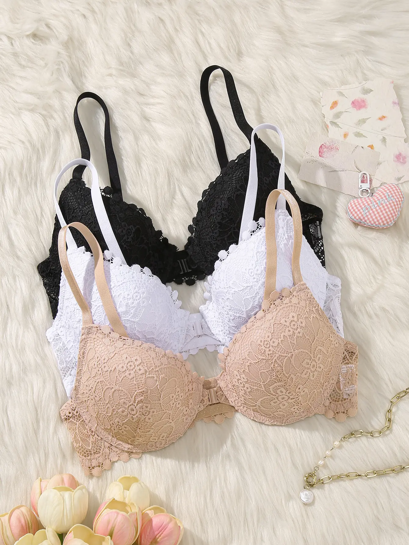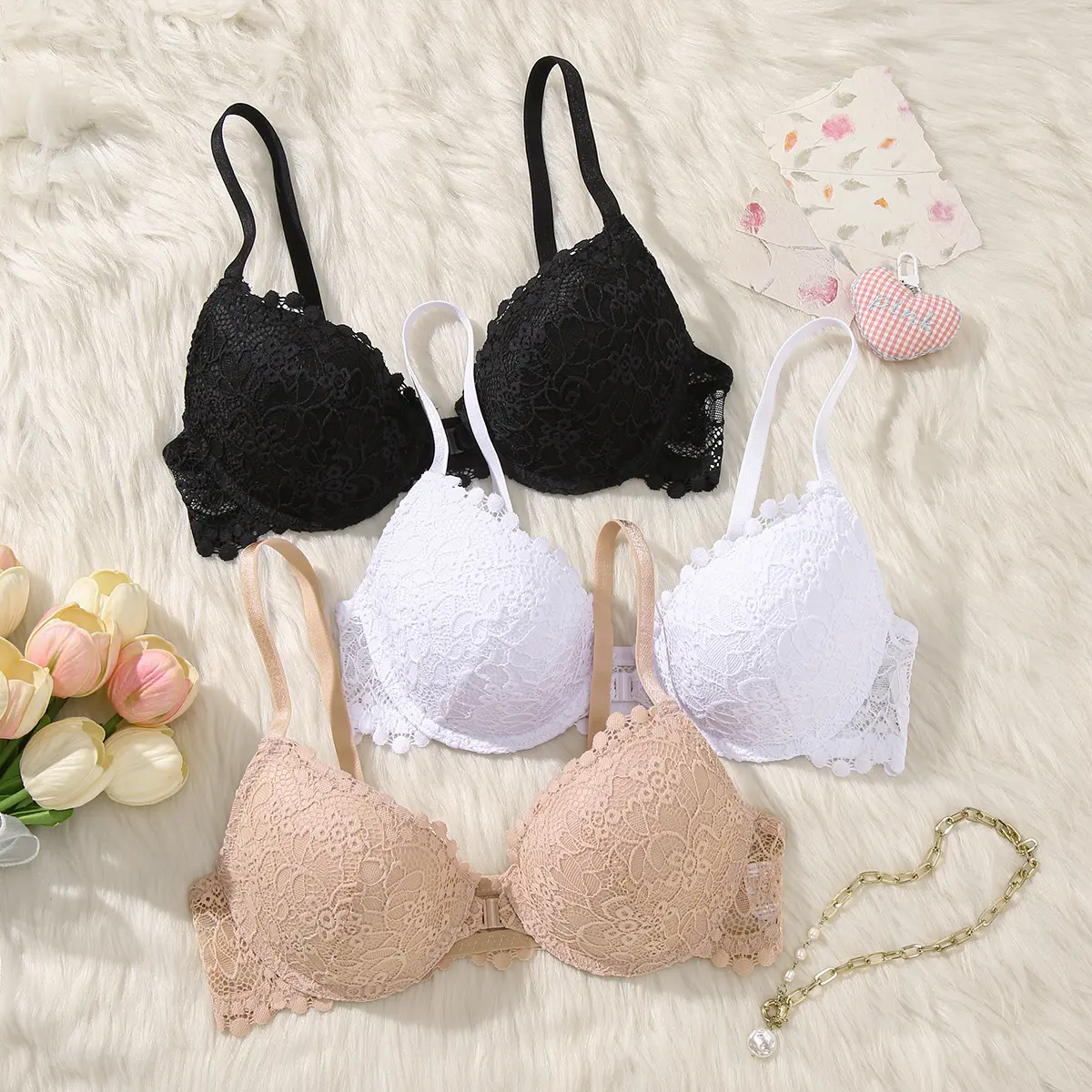 ·Set includes:Front Closure Push Up Bra, 3 Pack