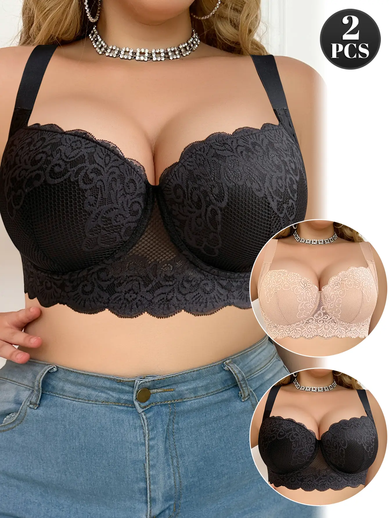 Love the material the lace look and how the bra fits super comfy love the fact that the back strap is wide an shoulder straps the only thing I don’t like is it’s not a push up bra it doesn’t have the padding on the inside like a push up bra should have but other than that I really like them
