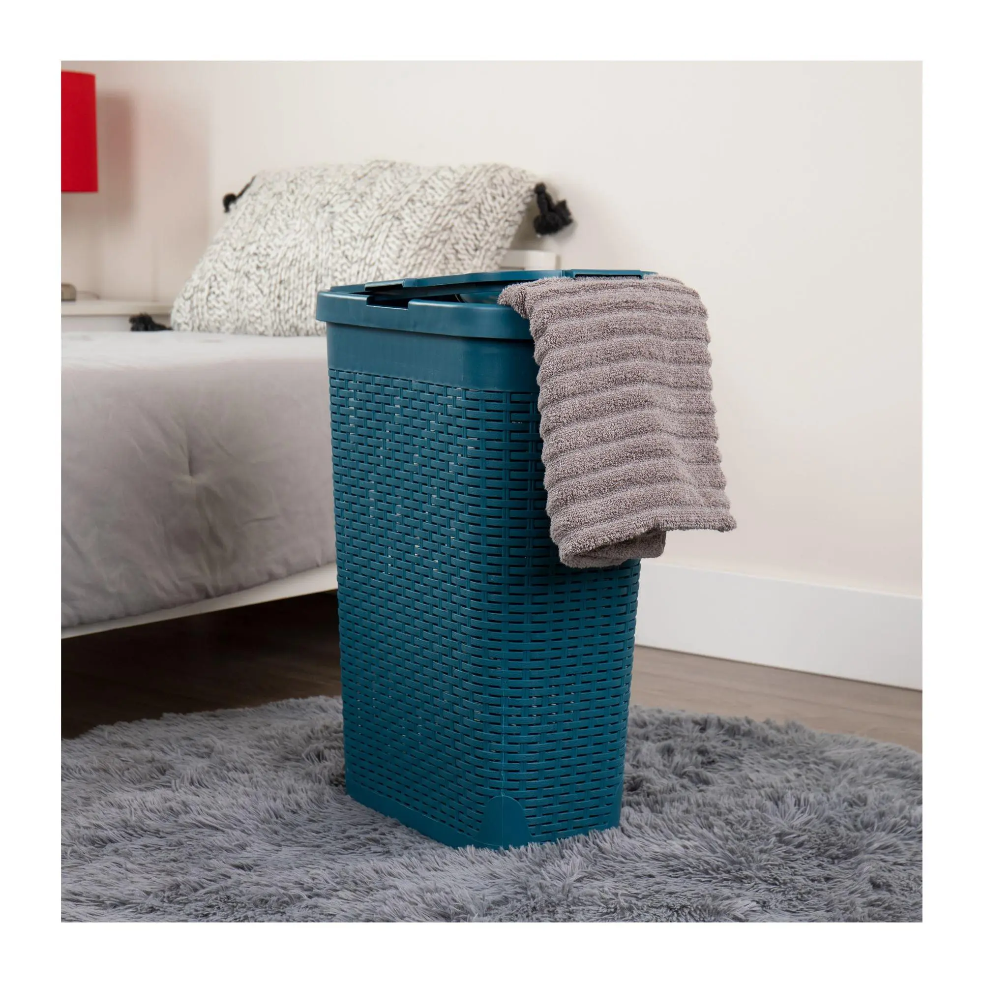 Looking for a slim laundry hamper for small spaces? This one is narrow, high quality, has a lid, and fits perfectly in tight spots. Such a good small space laundry solution! #laundry #hampers #laundrybasket #laundrybaskets #hamper @QVC, Inc