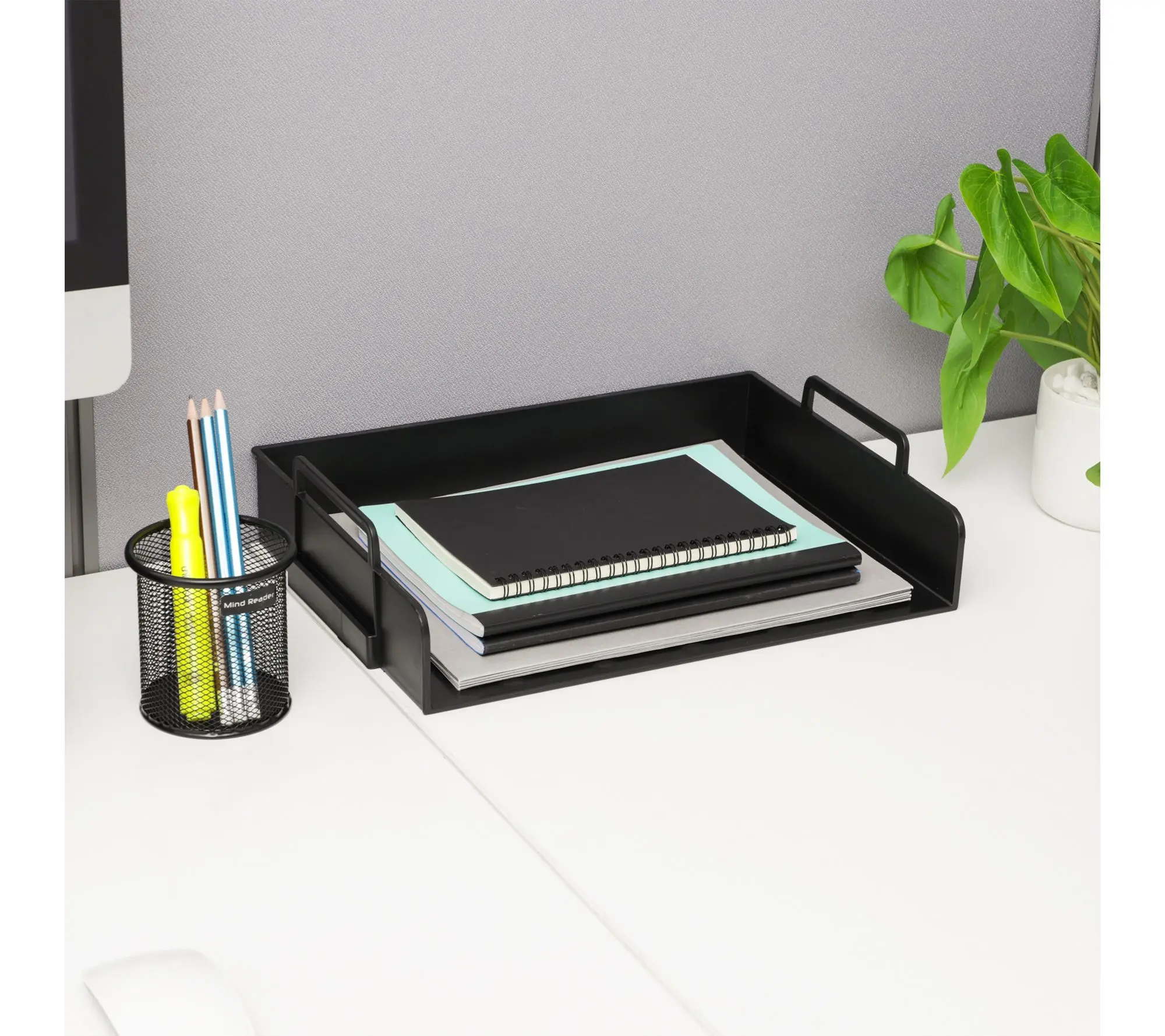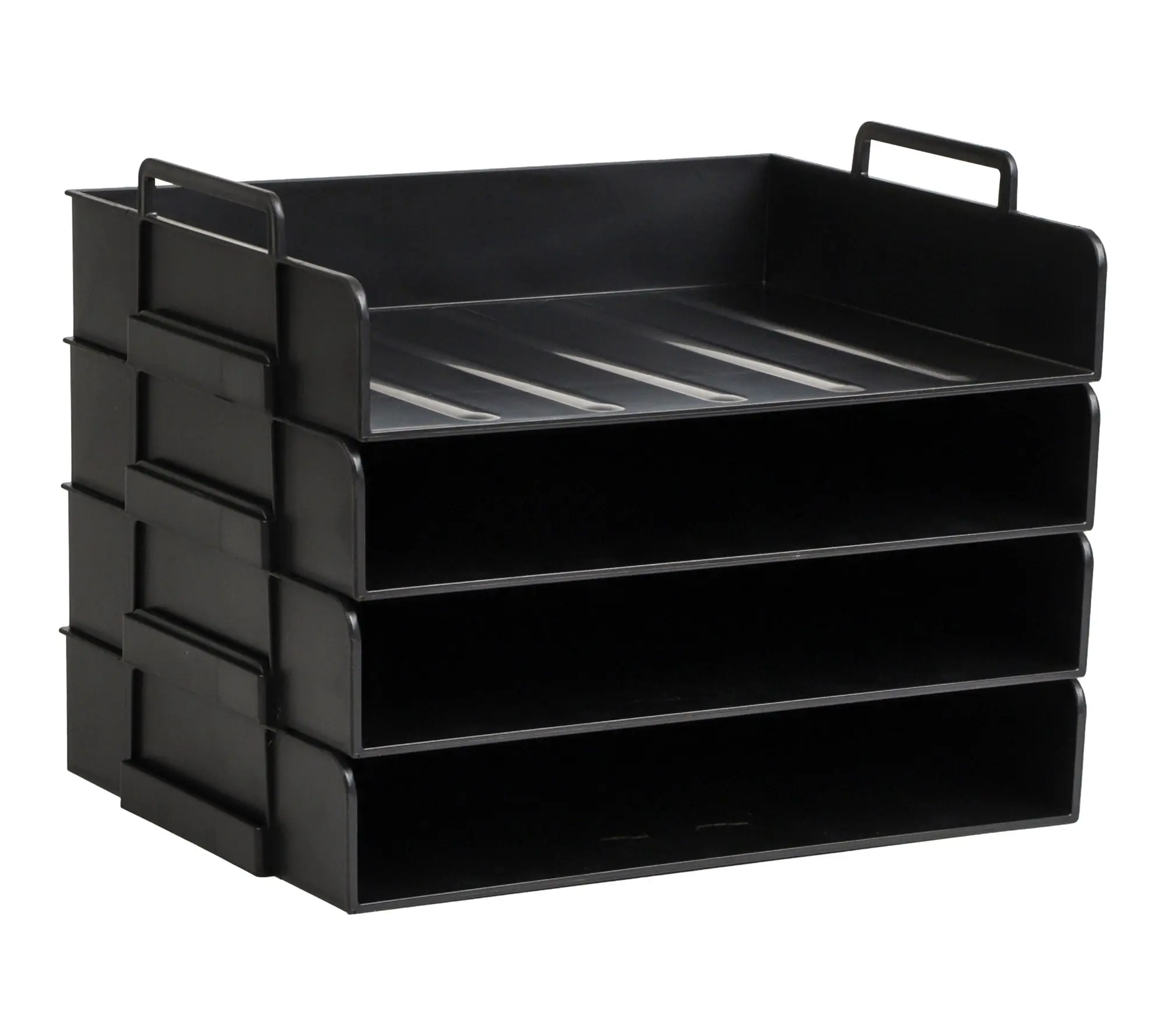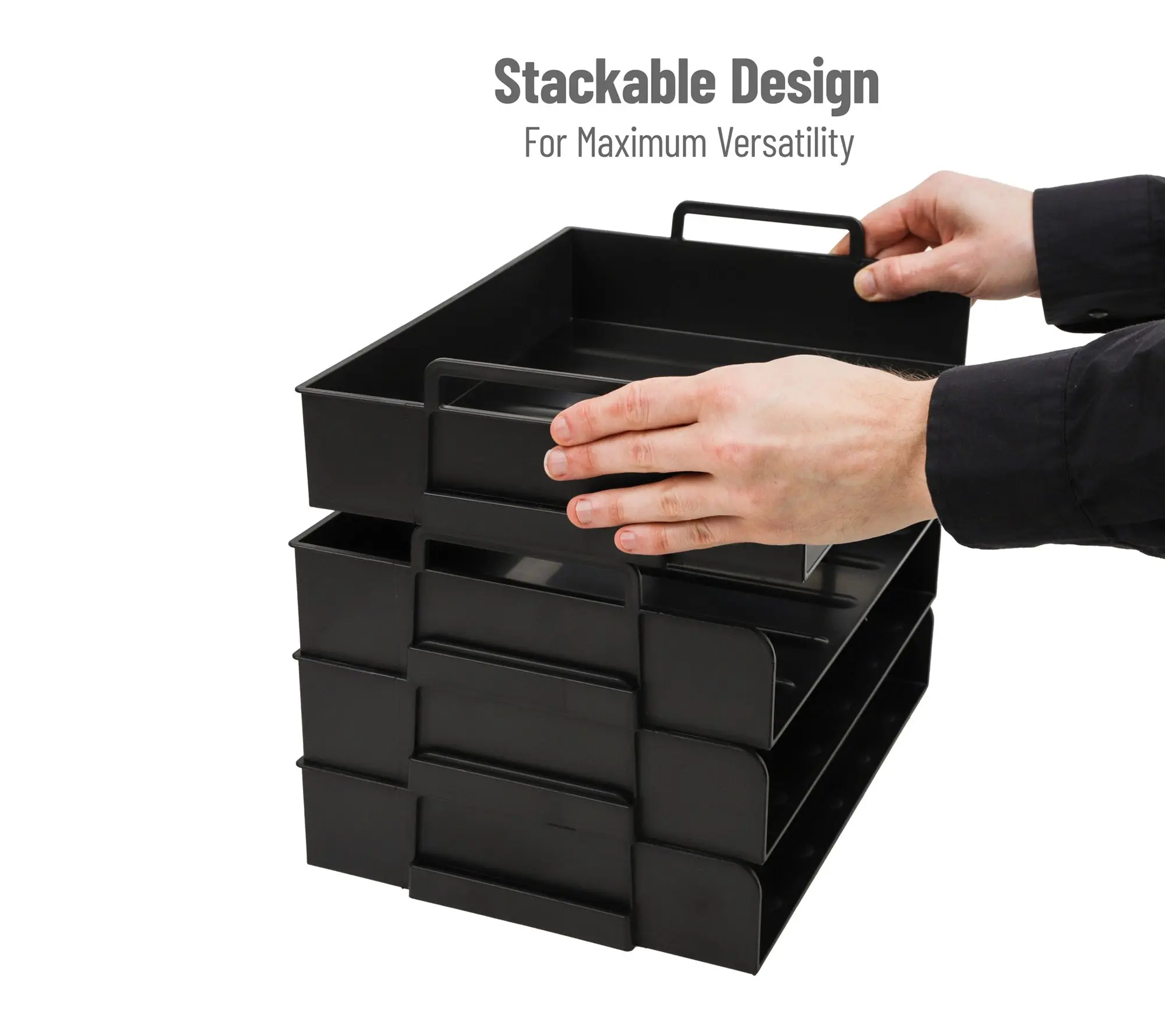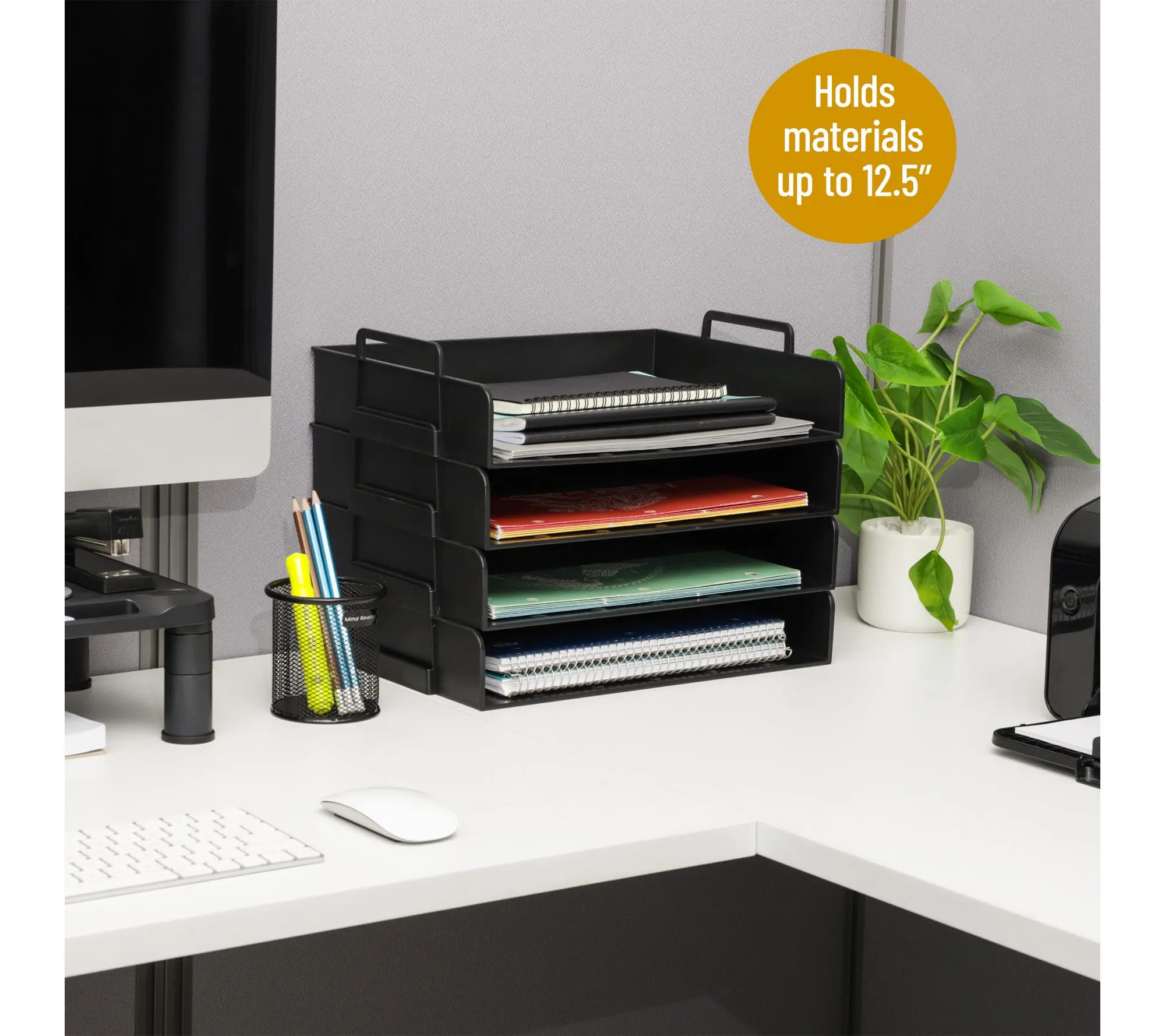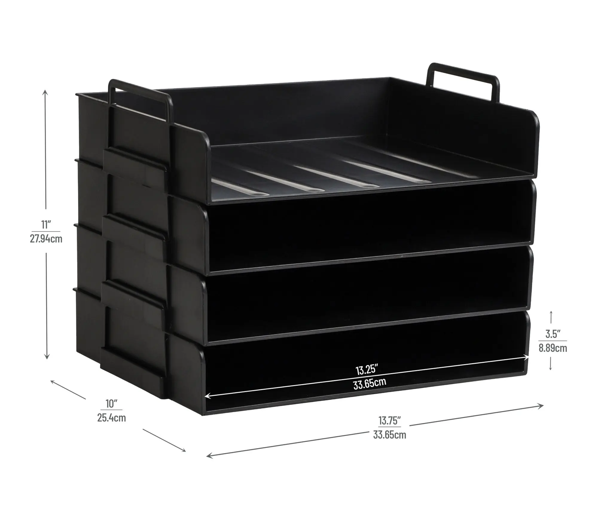 Decluttering your workspace is effortless with this stackable paper tray organizer. Keep papers, folders, and office supplies orderly, while its modern four-piece design fits seamlessly into any setting -- be it your home office, kitchen, or craft room. Arrange the trays together or separately for flexible organization that makes staying neat simple. From Mind Reader.