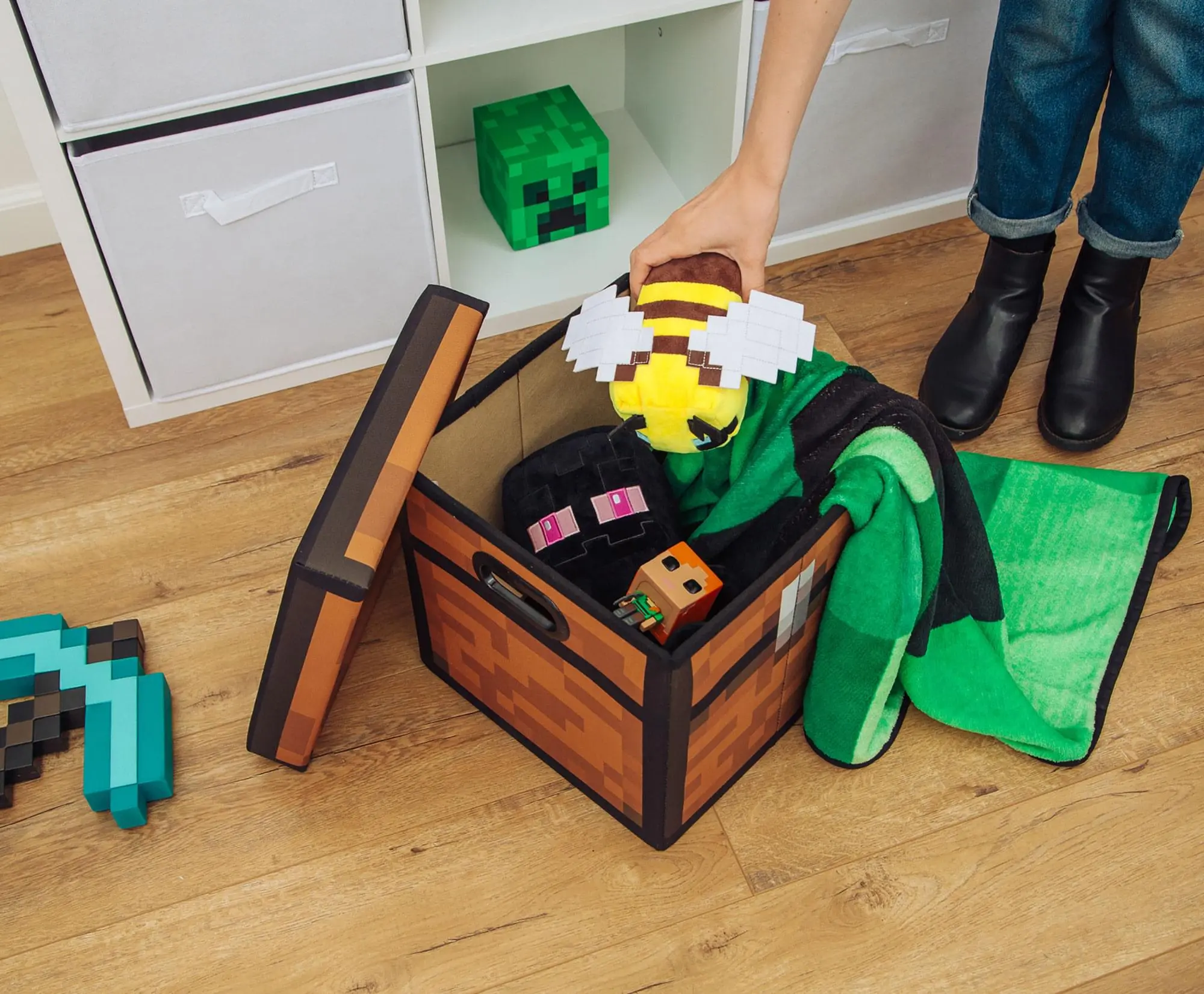 Now you can keep your real-world stuff in this Minecraft Brown Chest Storage Bin and not just rely on it in game. This 13" cube has over 27 slots of inventory space and reinforced handles on the side in case you fill it to the brim. Plus, it has a lid so you can hide whatever you've stashed away, whether that's books, clothes, gaming collectibles, or ore. An excellent gift for the gamer in your life, this storage cube will encourage them to keep their bedroom, gaming space, or dorm neat and tidy.
