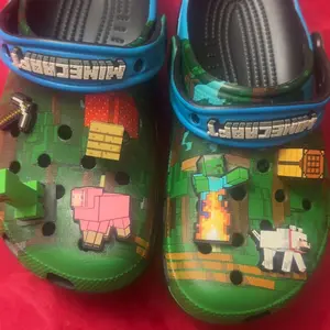We love these crocs. The minecraft crocs are perfect for any minecraft lover. The zombie on fire lights up but not enough to worry about. Any kod in your life would love to have these.