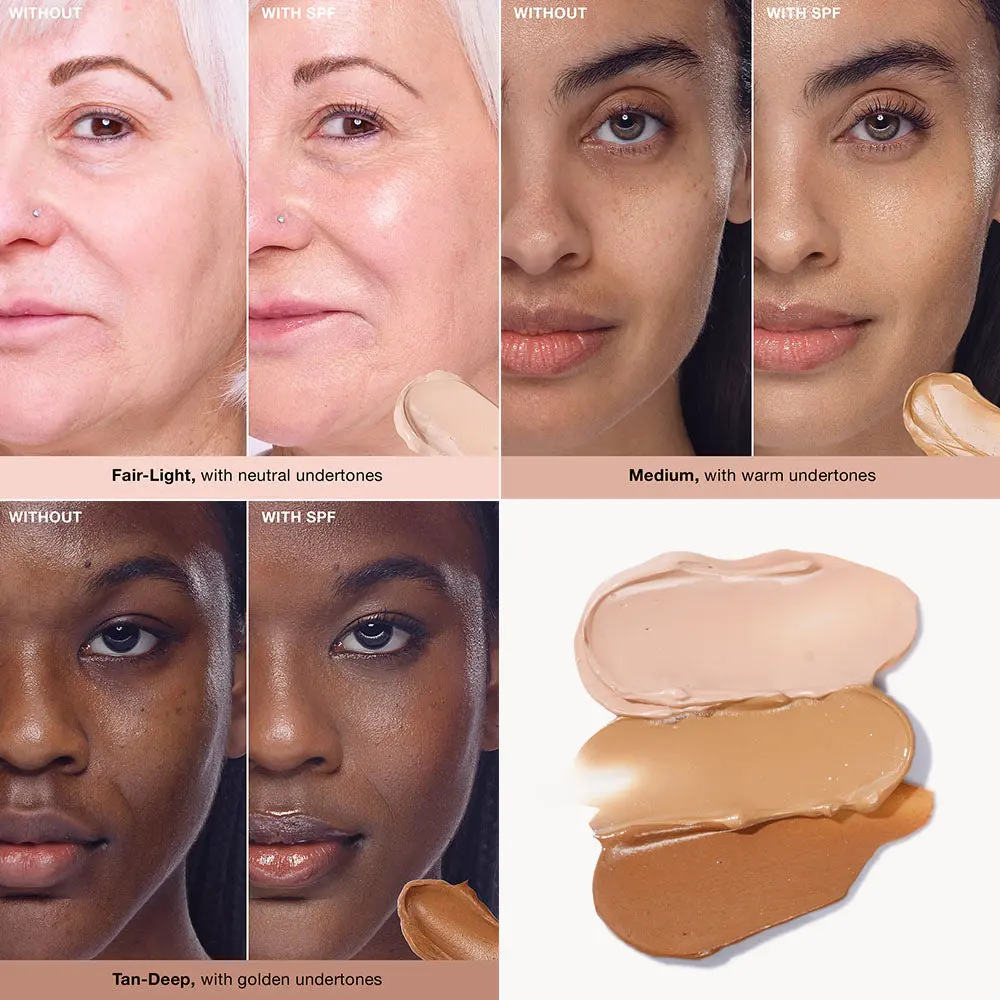 Three flexible shades instantly blend into skin to deliver a natural, radiant finish with no white cast.