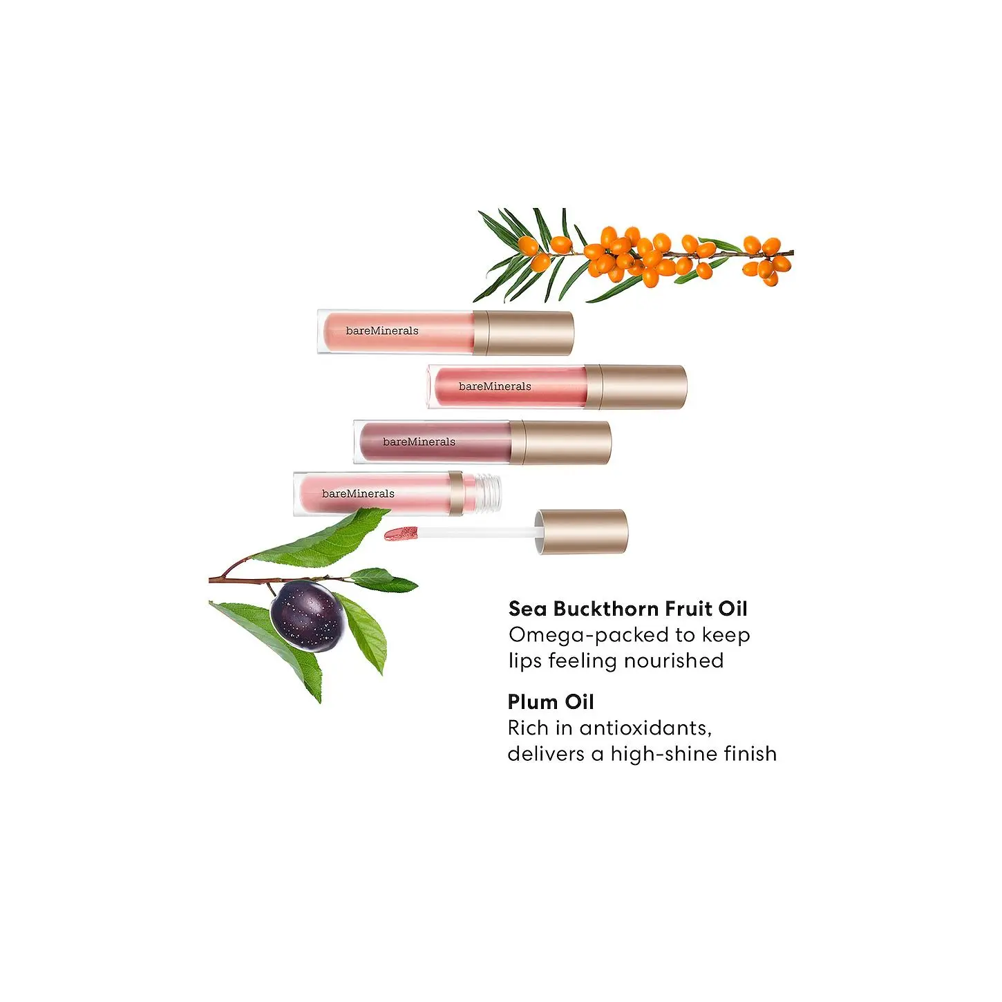 ·A nourishing lip gloss and balm hybrid made with naturally derived fruit oils to provide glossy shine with the hydrating feel of a balm