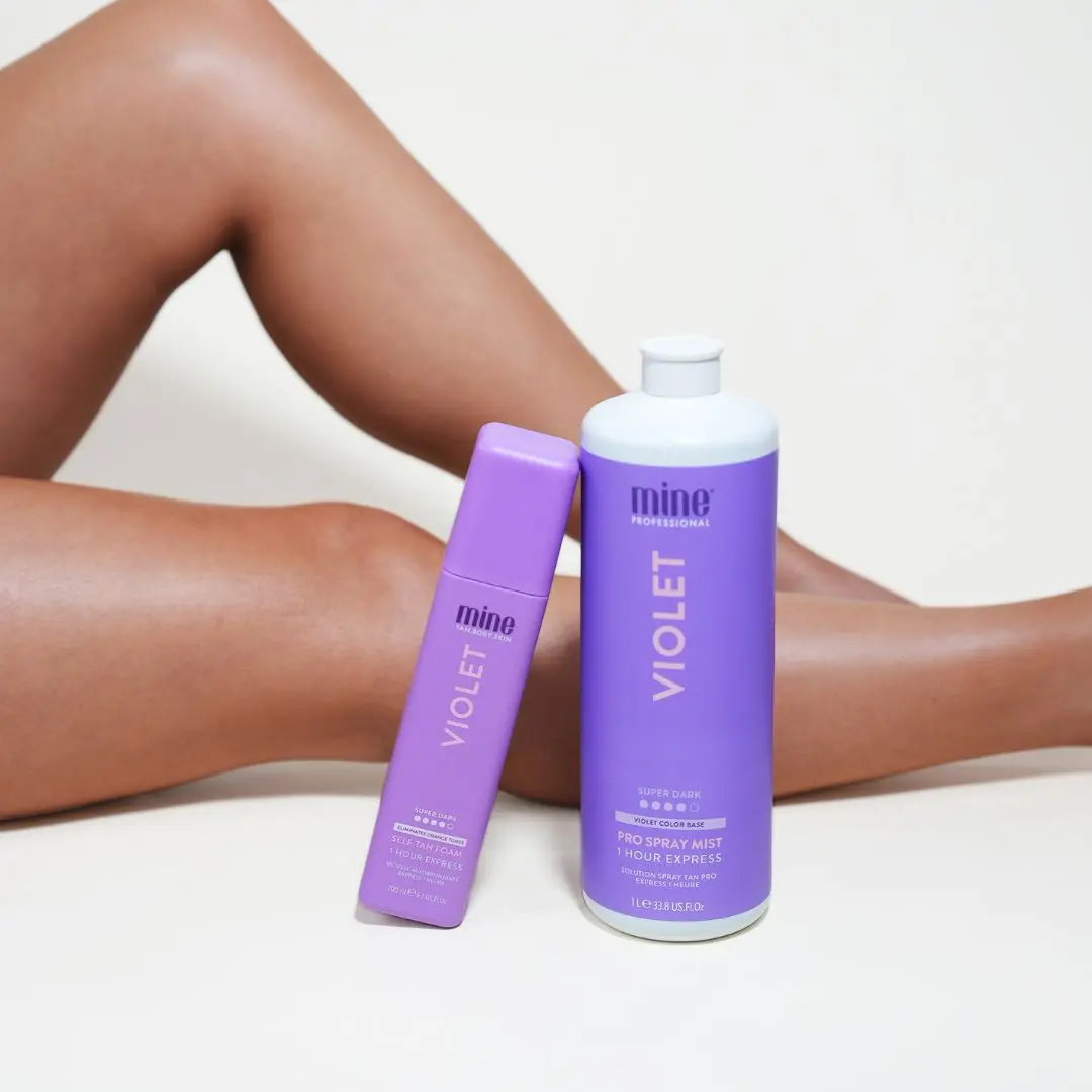 Violet Pro Spray Mist can suits all skin types and tones for those wanting a rich, super dark brown skin finish. Recommended for olive skin tones or those wanting to counteract oranges tones. Create your own custom cocktail using the Violet Pro Spray Mist to add a deep and rich bronze.