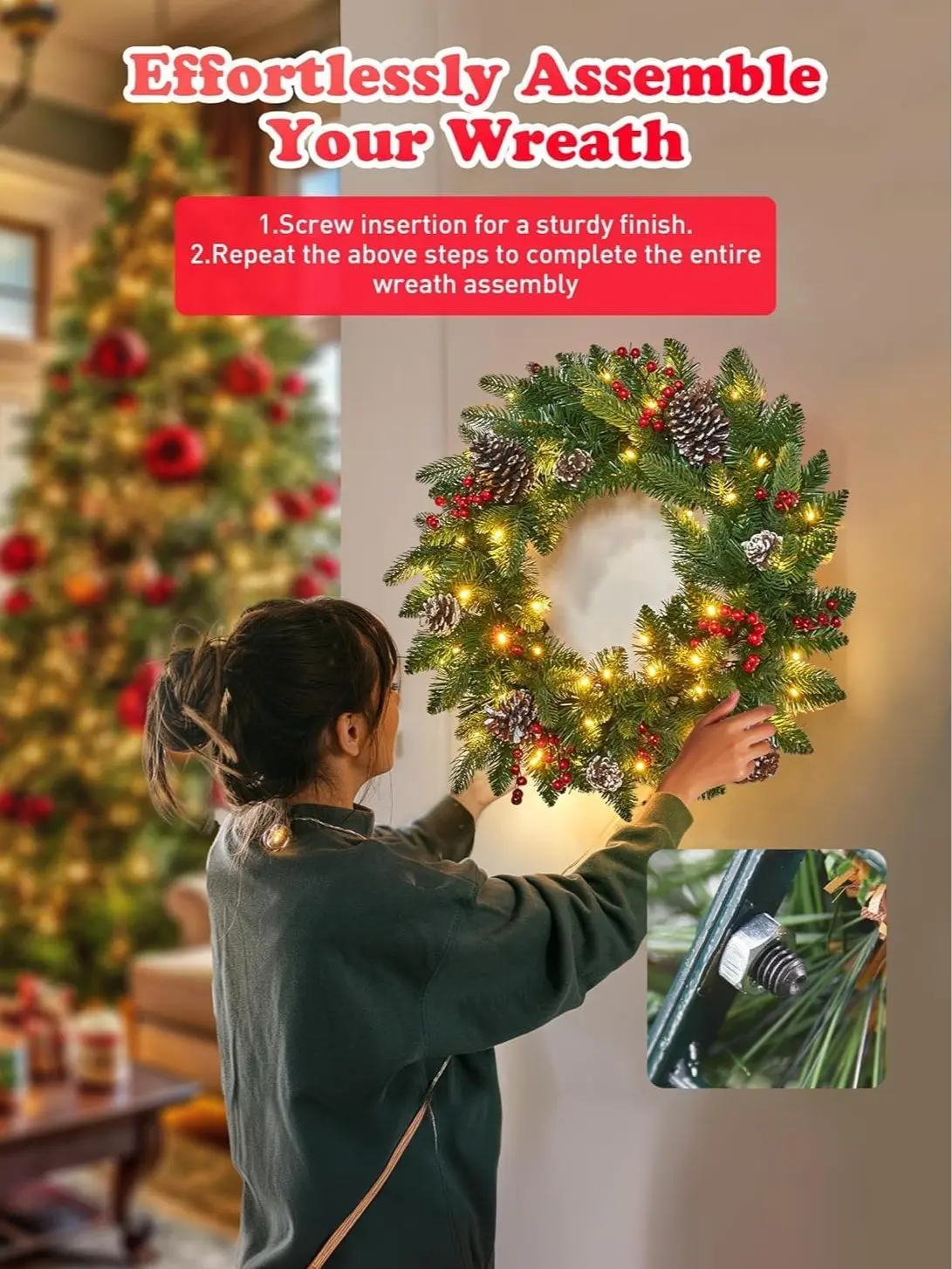 ·Christmas Wreath: 24-inch pre-lit Christmas wreath.