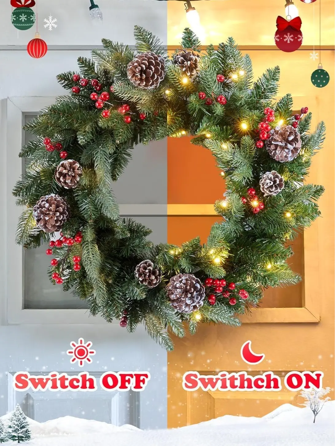 Choose from 4 Christmas wreaths: Christmas Wreath for Door, Pre-Lit Christmas Wreath, Christmas Wreath 24Inch, and Battery Christmas Wreath.