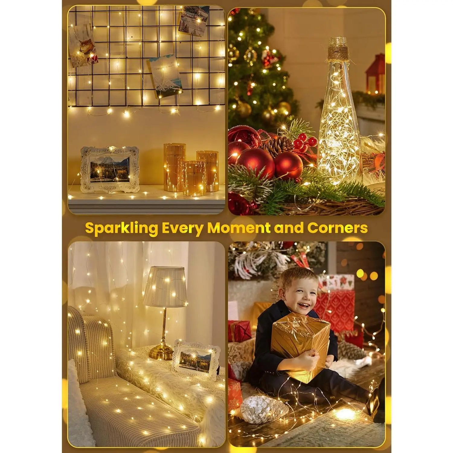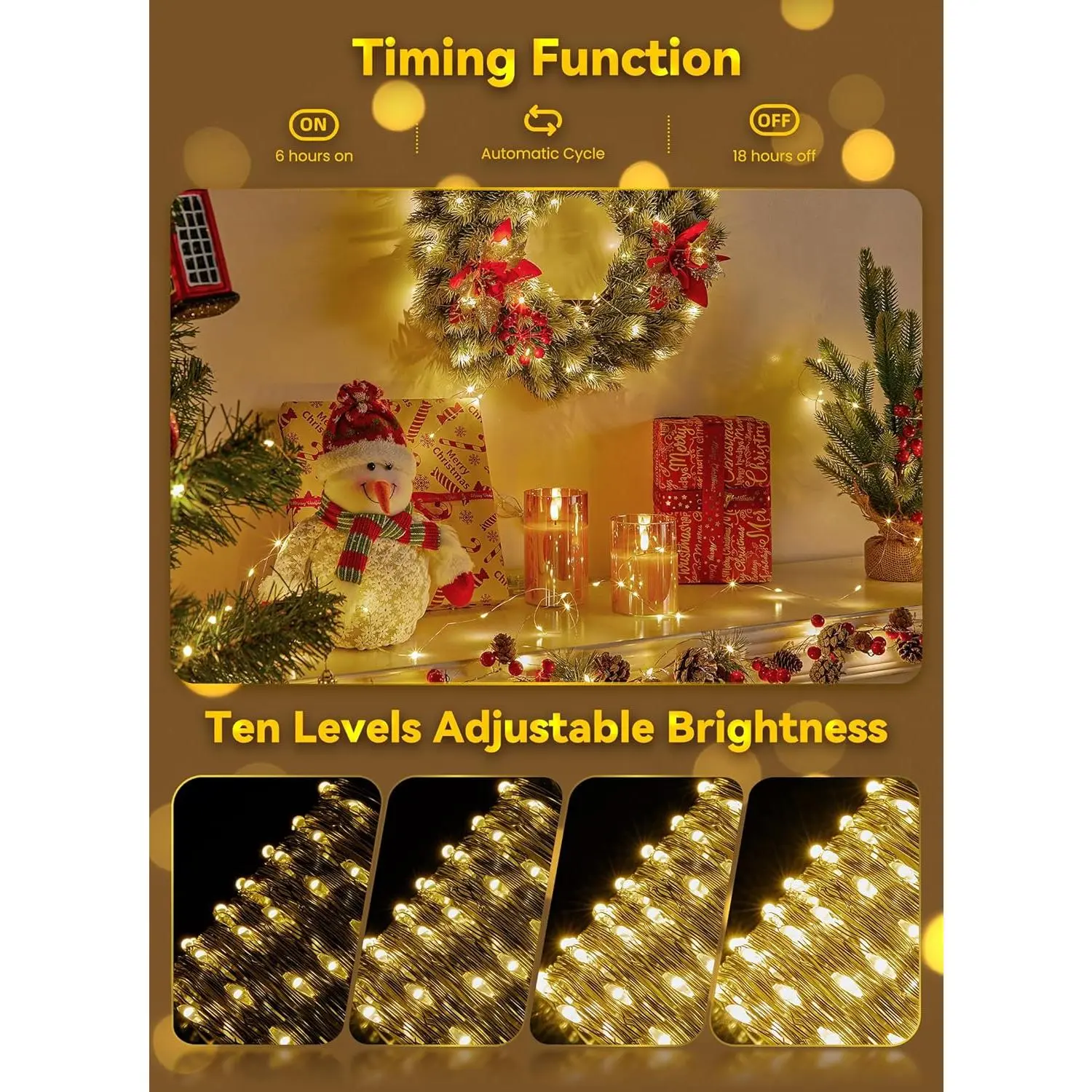 ·Brighter & Adjustable Lighting – Compared to standard battery fairy lights, these upgraded christmas string lights for bedroom use brighter warm white LEDs and stronger silver wire. With 10 dimmable settings, you can create a cozy glow or a festive sparkle—customized to any occasion