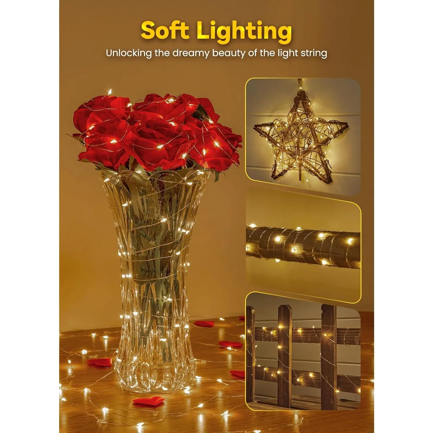 ·Portable & Waterproof Design – These fairy lights battery operated are perfect for areas without outlets or during power outages. Featuring an IP44 waterproof battery box and durable LED bulbs, they shine brightly even in wet weather—ideal for Christmas, weddings, and outdoor décor