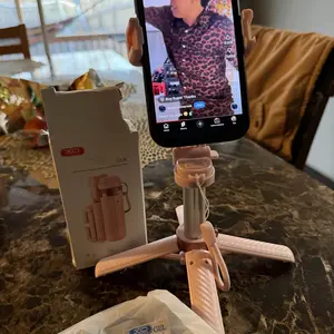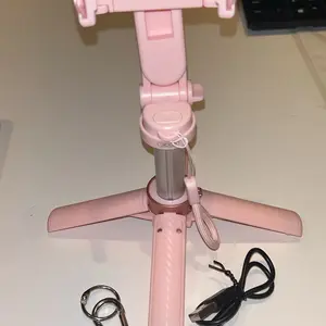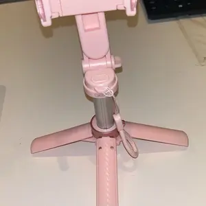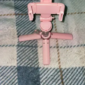 Absolutely love this pink mini tripod! Comes with a little carrying bag, fits nicely into my purse. It can be doubled as a selfie stick as well and there is a removable Bluetooth button to stand back ama take hands off pics or videos in one click’