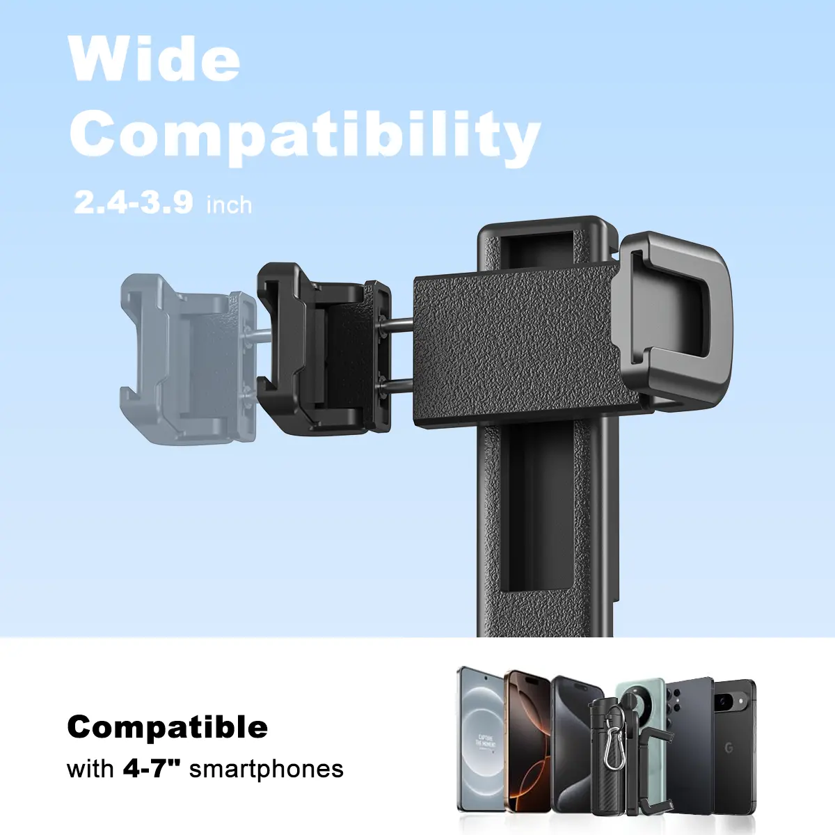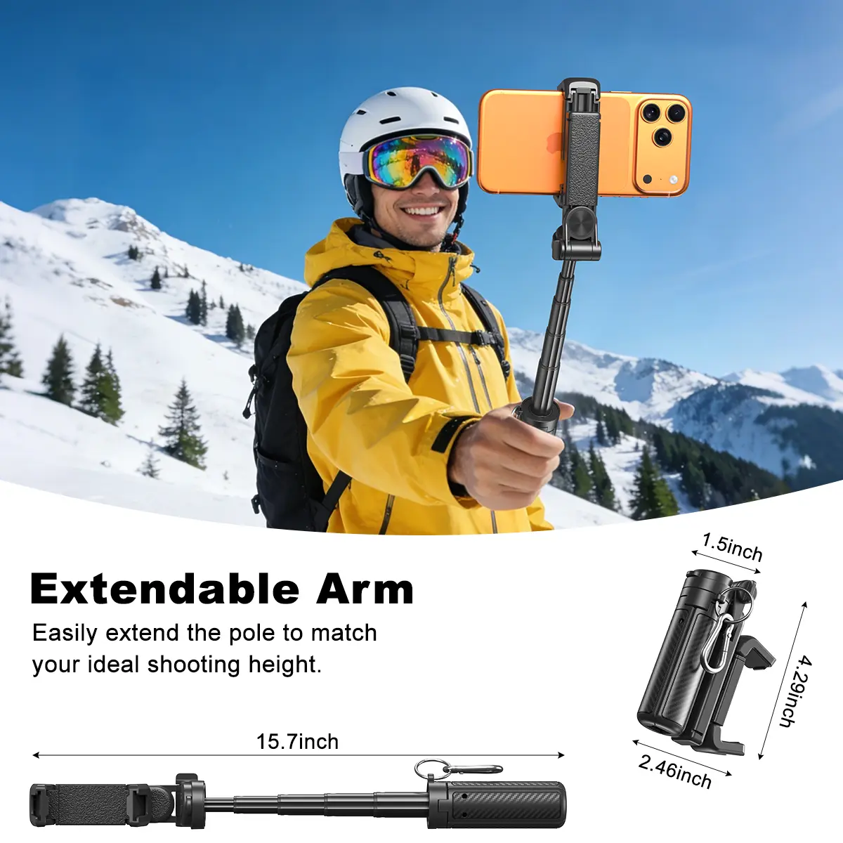 Convenient compact durable will hold up with an iPhone 16 pro max, has a remote for hands free action.