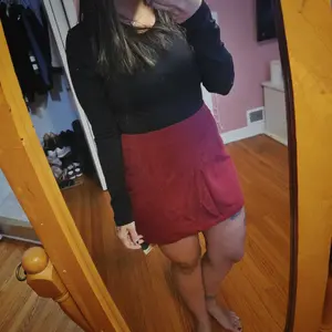 Super cute corduroy skirt/skort!! i'm 129 pounds 5'3 and I got an extra small Very good material not a hard corduroy more like a soft, comfortable cute little Christmas skirt or any other event!!I have 2 more on the way!! Zips in the back!