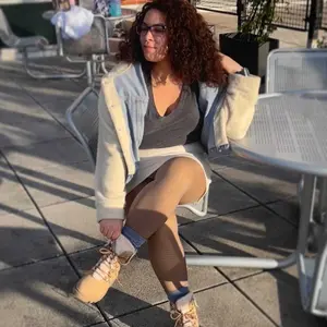 so stinkin cute! i’m 5’2 wearing size xs, so comfortable! i got a black pair too and im obsessed!!