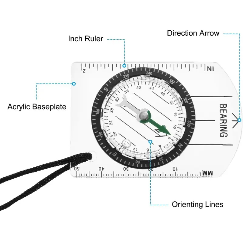 Mini Compass, Acrylic Transparent Compass, Multi-Function Portable with Scale Markings, Ideal for Outdoor Enthusiasts, Essential for Hiking, Cycling and Mountaineering