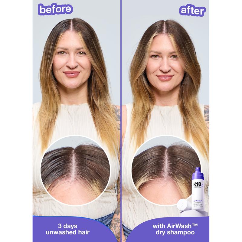 The photos are before and immediately after. I was skeptical of this product but it is beyond amazing. I have tried so many dry shampoos and nothing even comes close. Highly highly recommend for oily scalps.