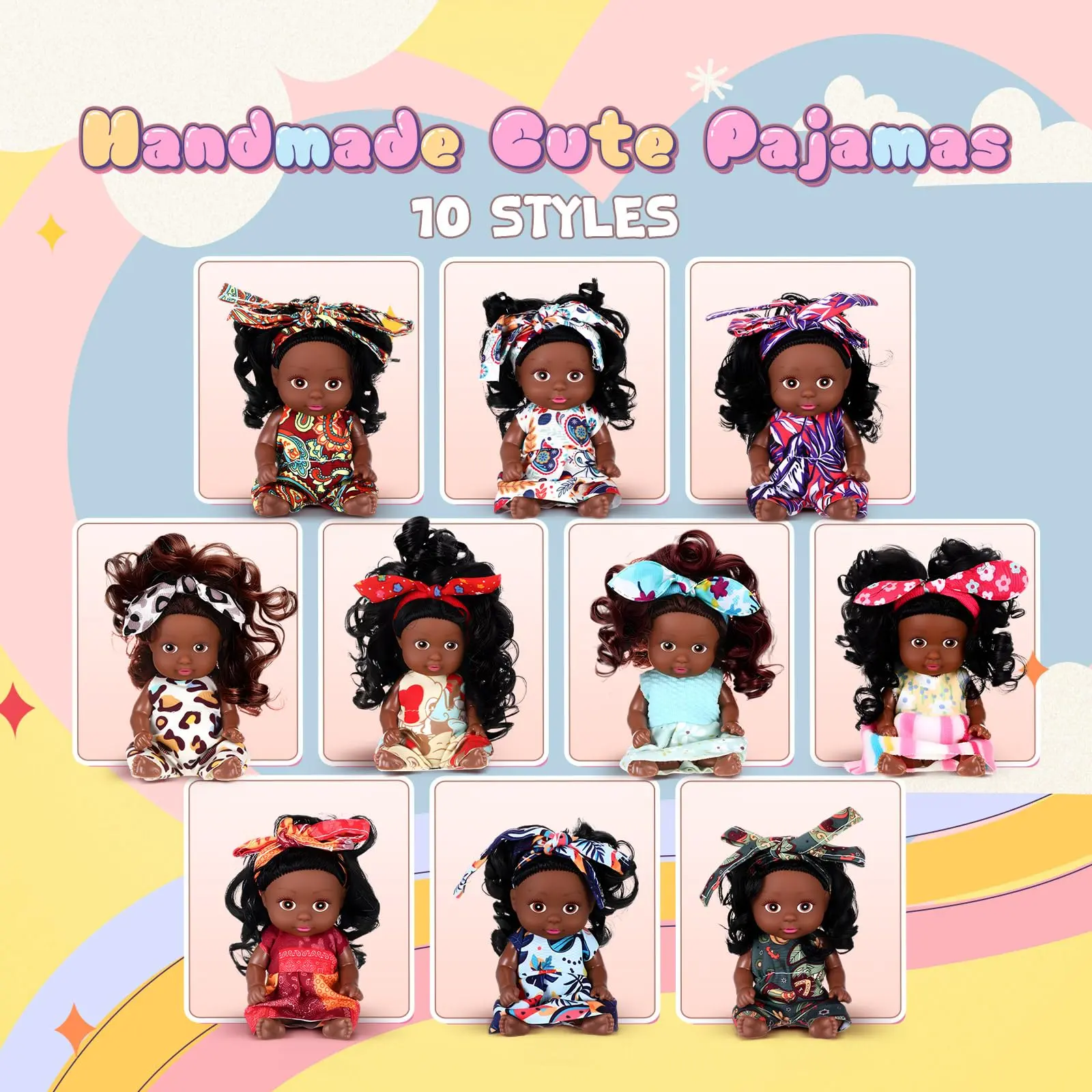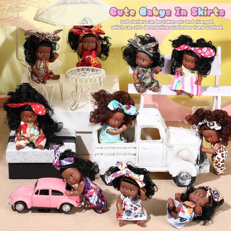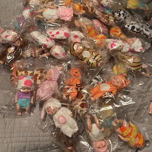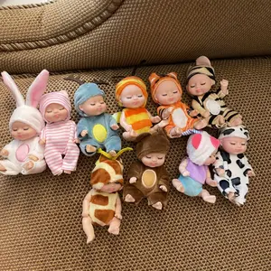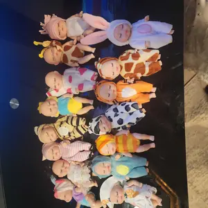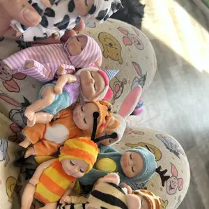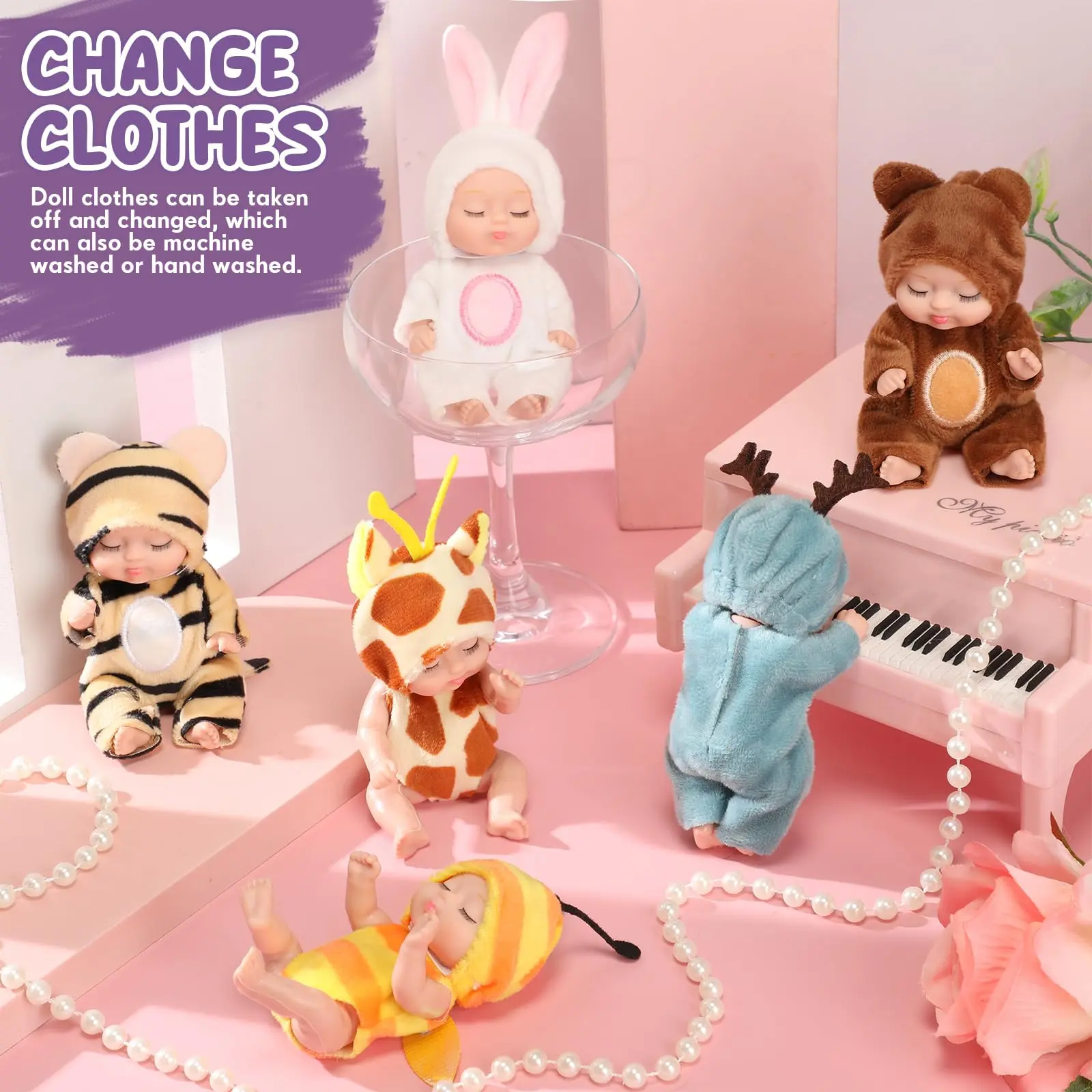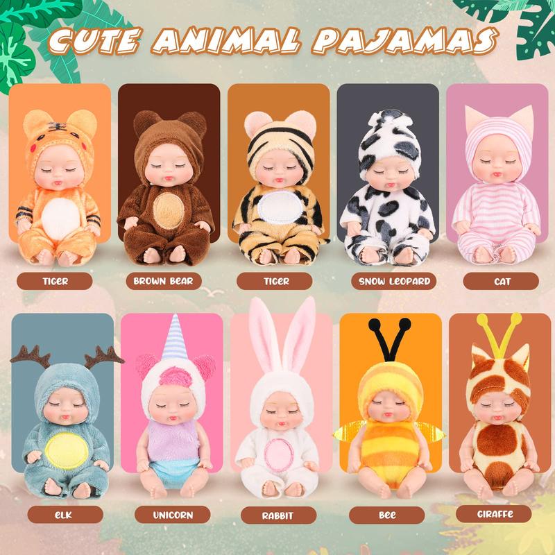 1. Product Specifications: This set includes 6-10 miniature reborns (depending on the package), each dressed in unique animal-themed outfits such as fox, crocodile, butterfly, rabbit, bee, bear, cat, unicorn, leopard, giraffe, elk, and tiger. Sizes vary slightly: unclothed reborns measure approximately 4 inches (11 cm) in length, while clothed reborns extend to 4.3 inches. Sitting poses are compact at 3.5 inches. Movable joints and adjustable postures enhance play versatility.