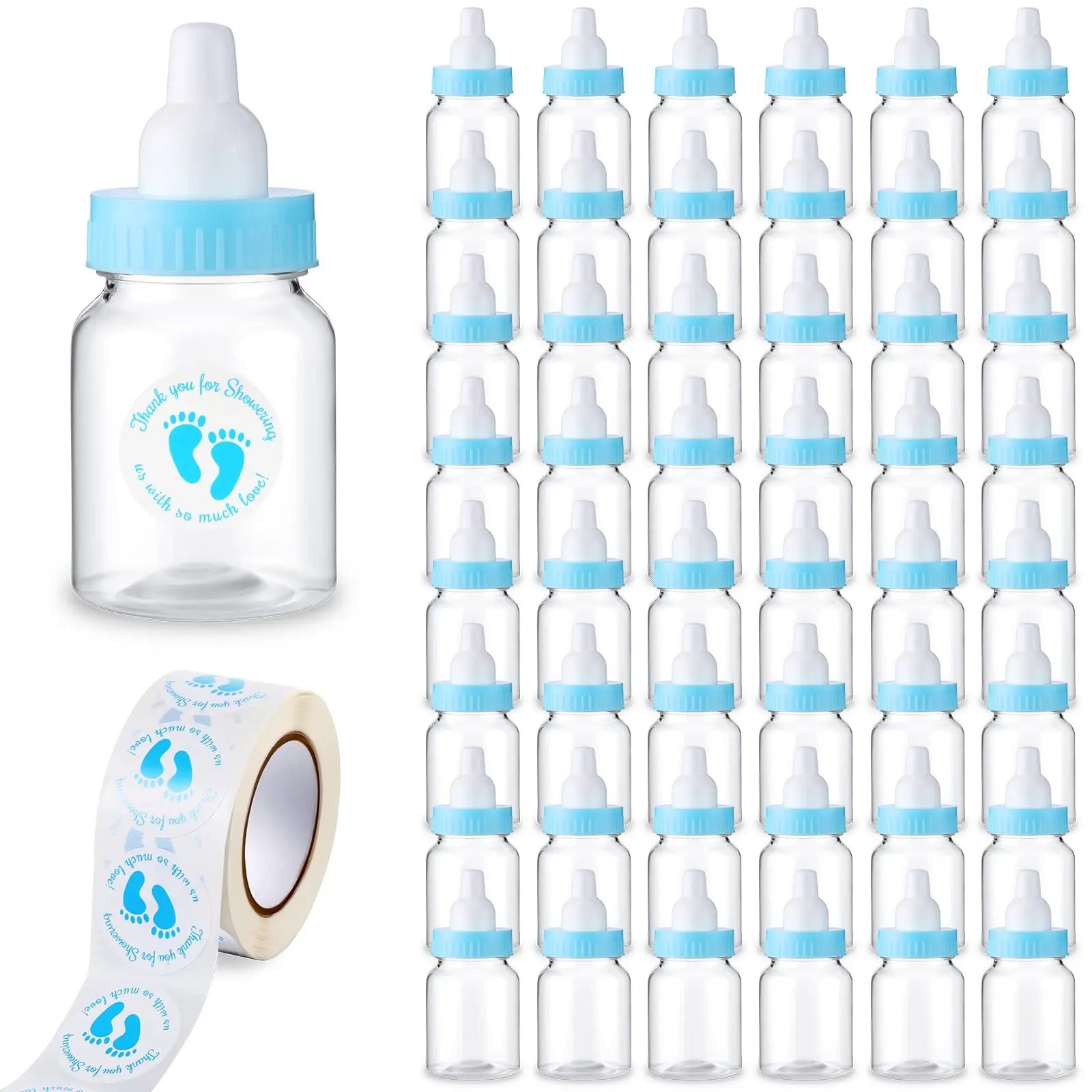 The small baby bottles are made of quality plastic, not easy to break or deform, convenient and safe to use, and the shower stickers are made of adhesive paper, bring you a nice use experience.