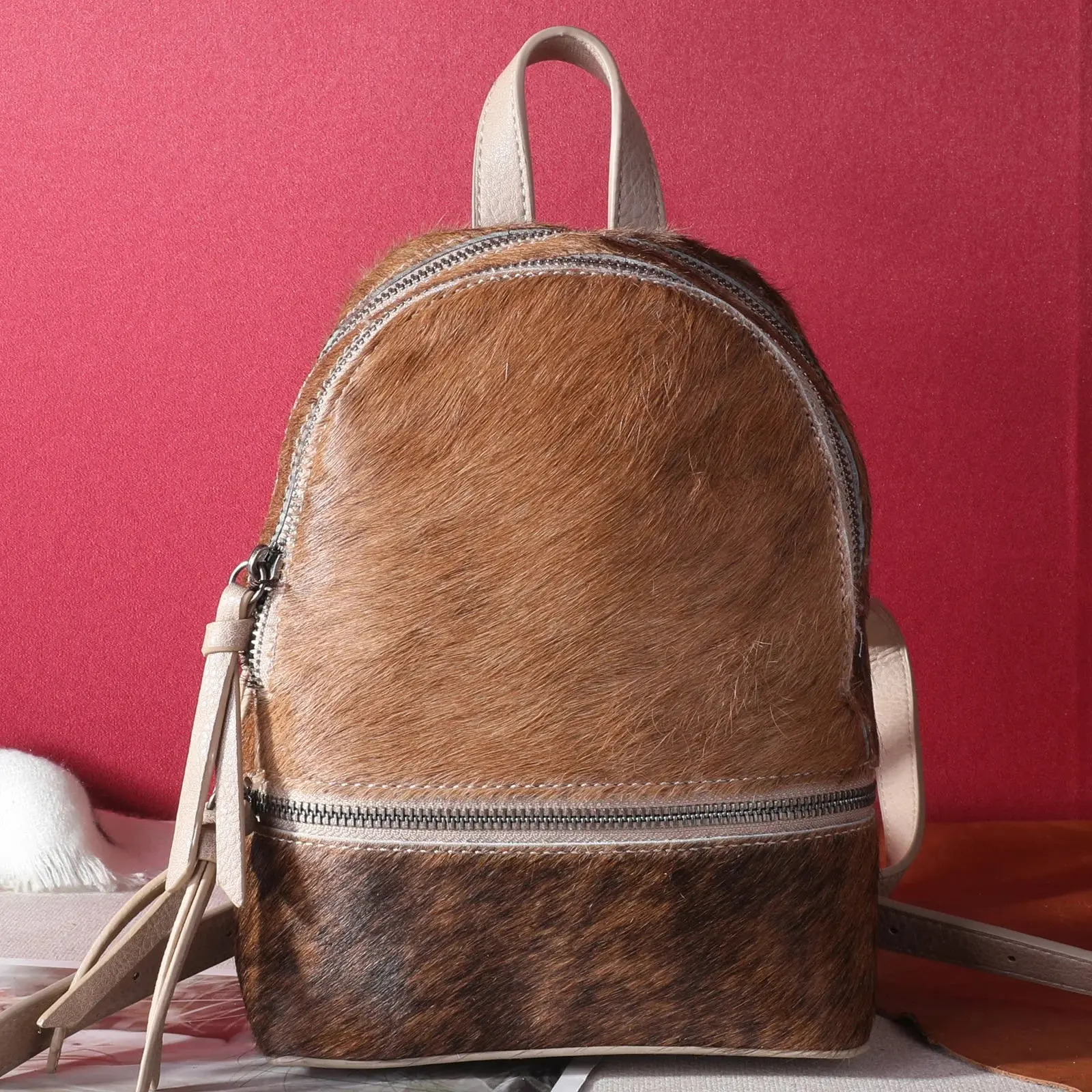 I love mini backpacks! This hair on cowhide is soft and this lil bag is roomy. Very cute & Good quality! 🤎 I ordered another in a different color thank you so much!!!
