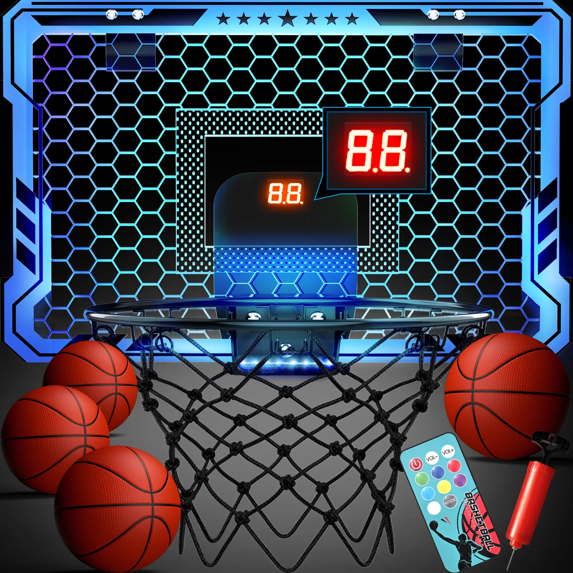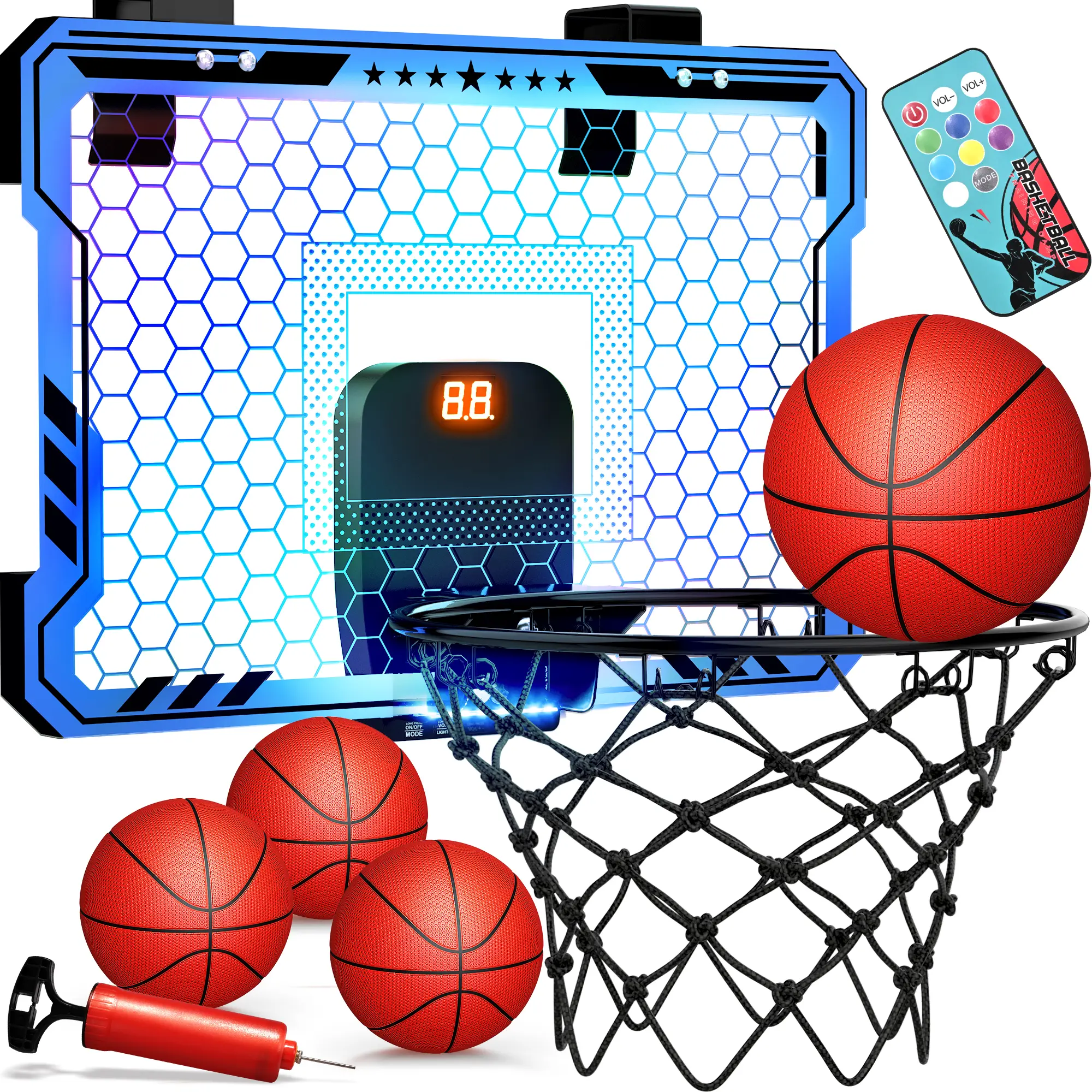 ·IDEAL GIFT: Choose this versatile remote control basketball hoop as a birthday or Christmas gift. Scoring basketball hoop indoor with 7-color LED lights is a great toy and gift for boys and girls ages 8-13