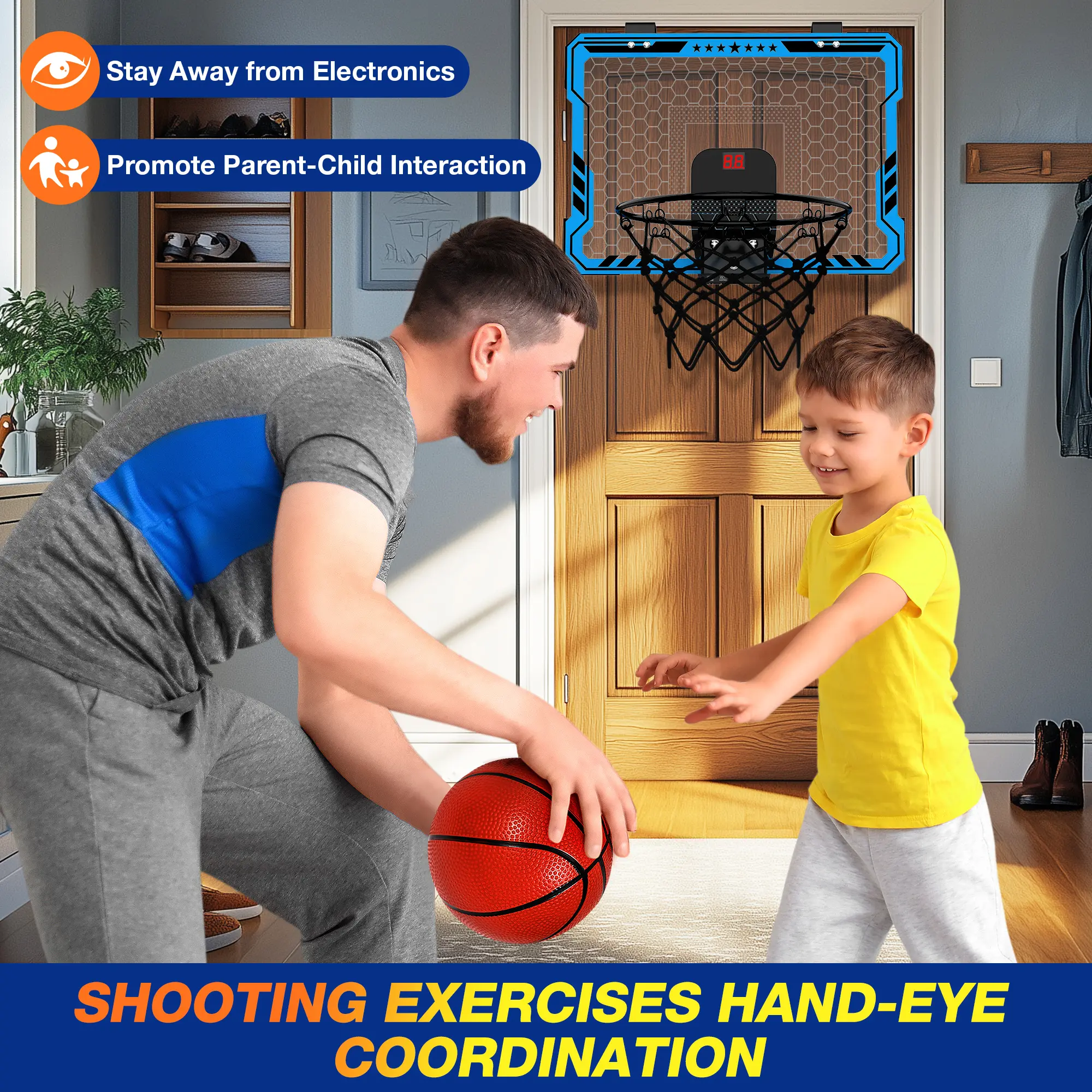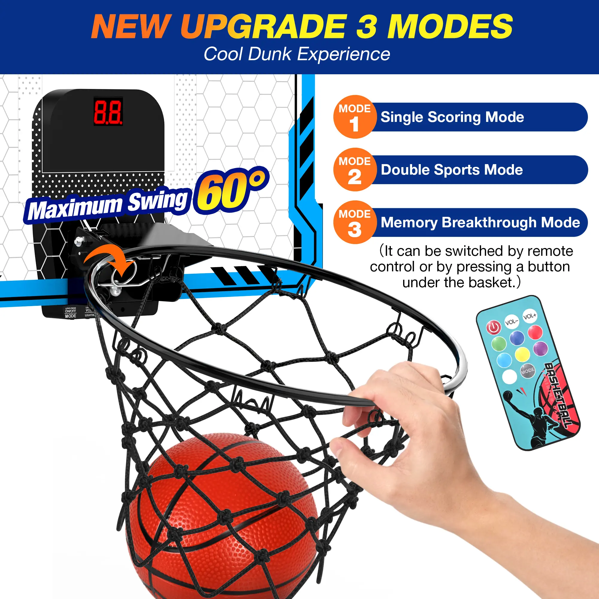 ·3 MODES & DUNKABLE: Our scoring indoor Basketball Hoop has 3 game modes, Whether it's kids shooting, dunking practice, or kids shooting games, you can find the corresponding mode. Parents can also play and interact with children, improving children's hand-eye coordination while strengthening parent-child interaction, great toys for ages 8-13