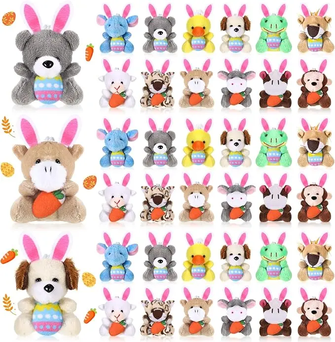 36 Pcs Easter Mini Stuffed Animal Easter Basket Stuffer Easter Party Favors Tiny Plushies Doll for Classroom Exchange Gift Party Festival Decor