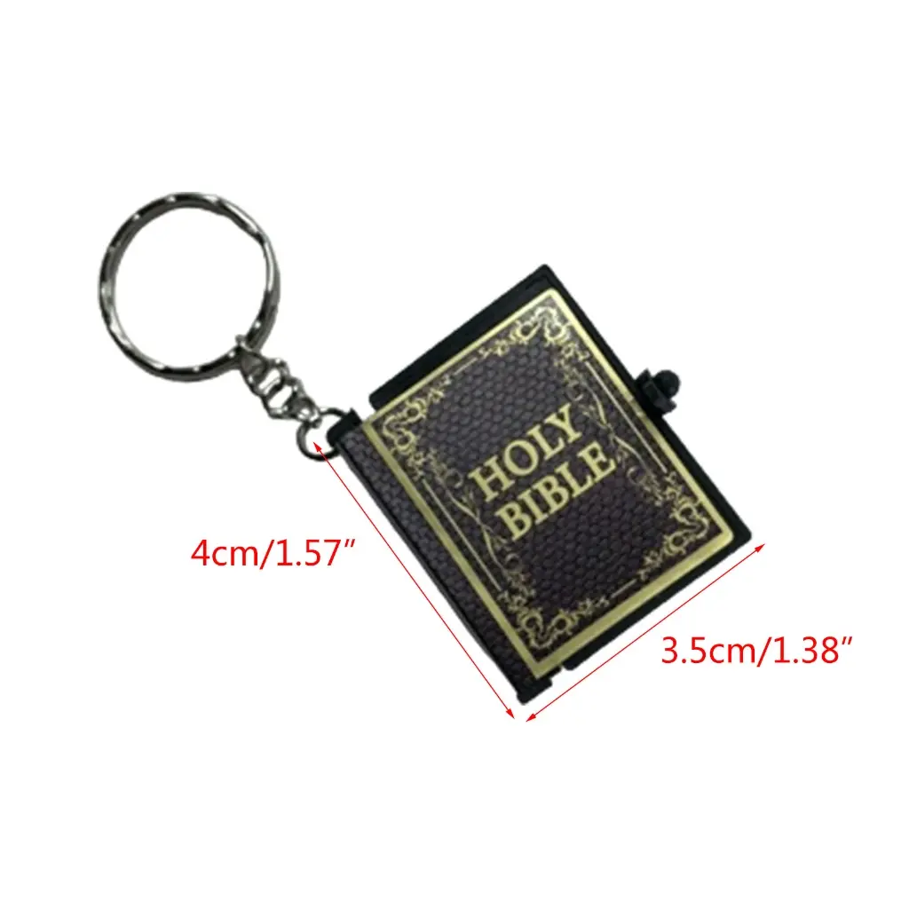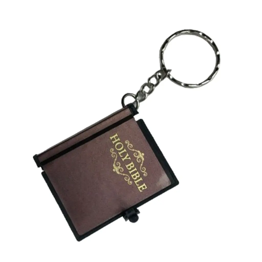 Discover charm of mini Bible keychain.