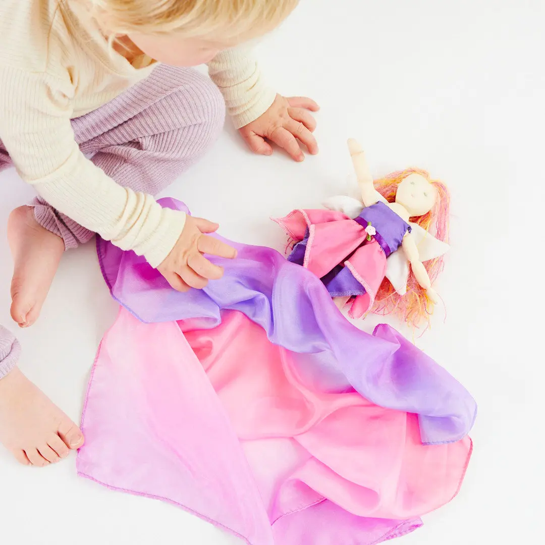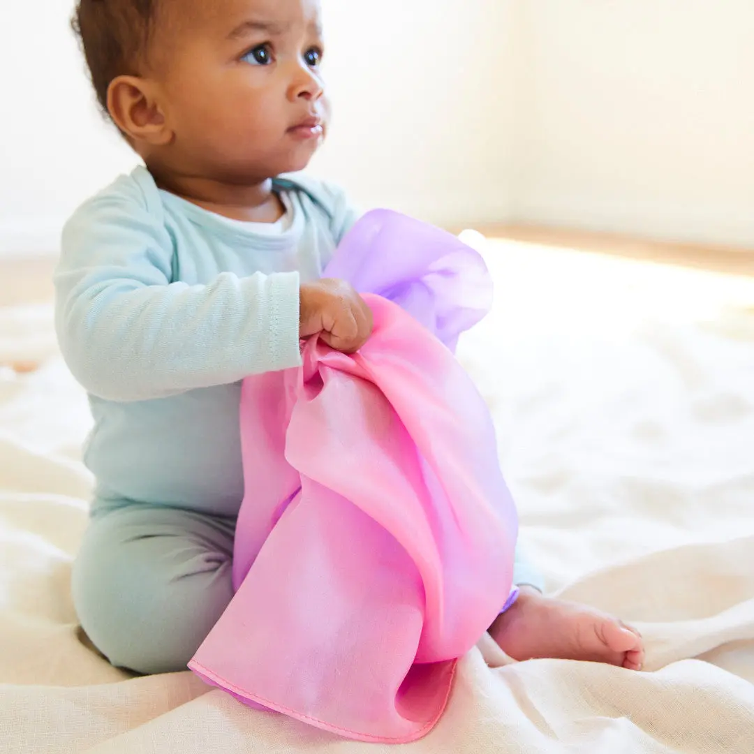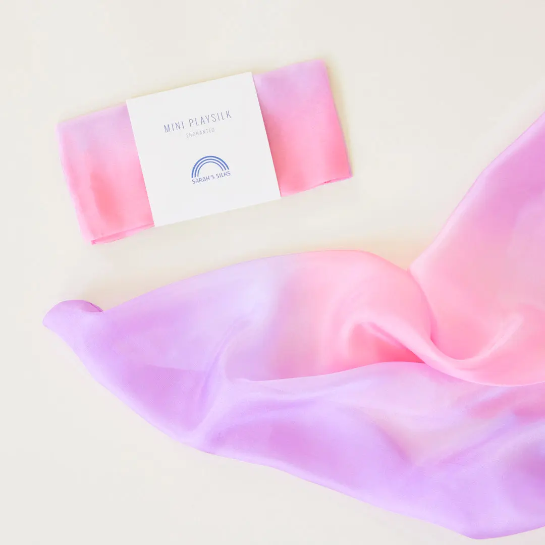 Mini Enchanted Playsilks are 21 x 21-inches featuring beautifully blended color harmonies inspired by nature's beauty. Made from lightweight, 100% pure mulberry silk.