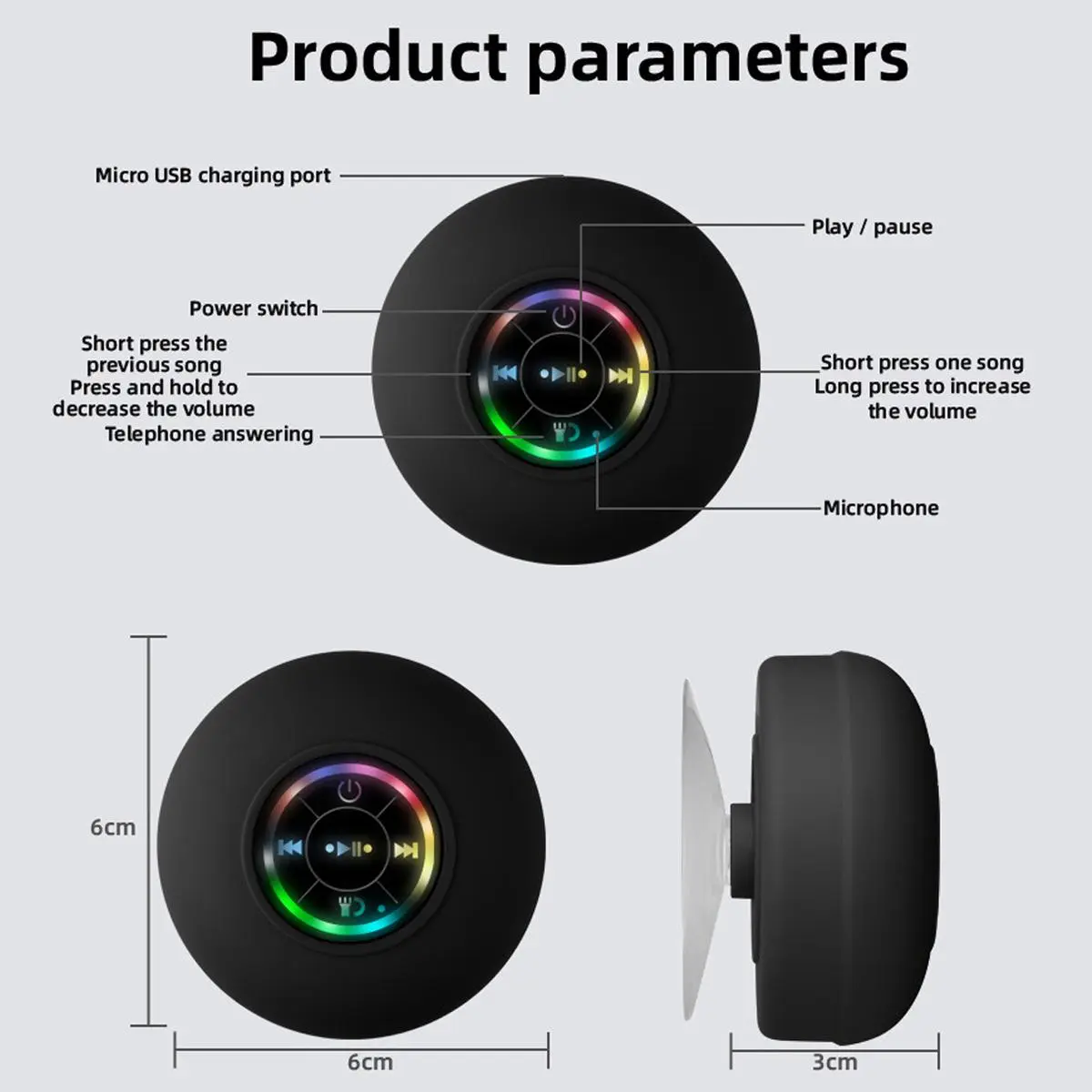 LED Bathroom Speaker, Portable Mini Wireless Suction Cup Speaker, USB Rechargeable 5.0 Wireless Version, Suitable For Parties, Bathroom, Travel, Home And Outdoors (Suction Cup Must Be Used On A Smooth Surface) Thanksgiving Christmas New Year Gifts