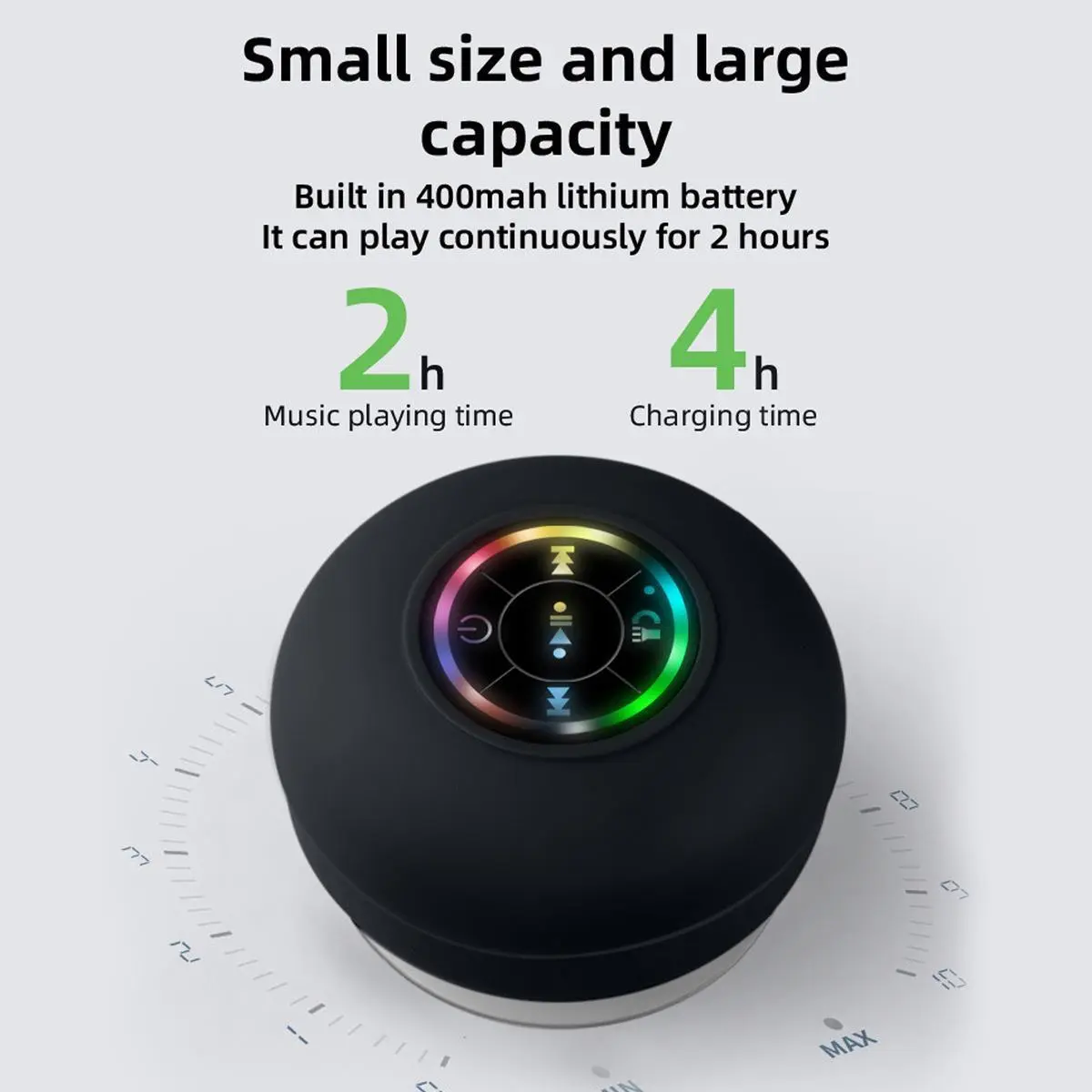 ·【RGB Light Show】The Bluetooth Shower Speaker can light up your life. You can enjoy the RGB light show when you using the portable Bluetooth speaker listen music. RGB light let your life become more interesting at night. Our Cool RGB Bluetooth Speaker can be as a gifts for Kids,teen,men, women, your friends or family!