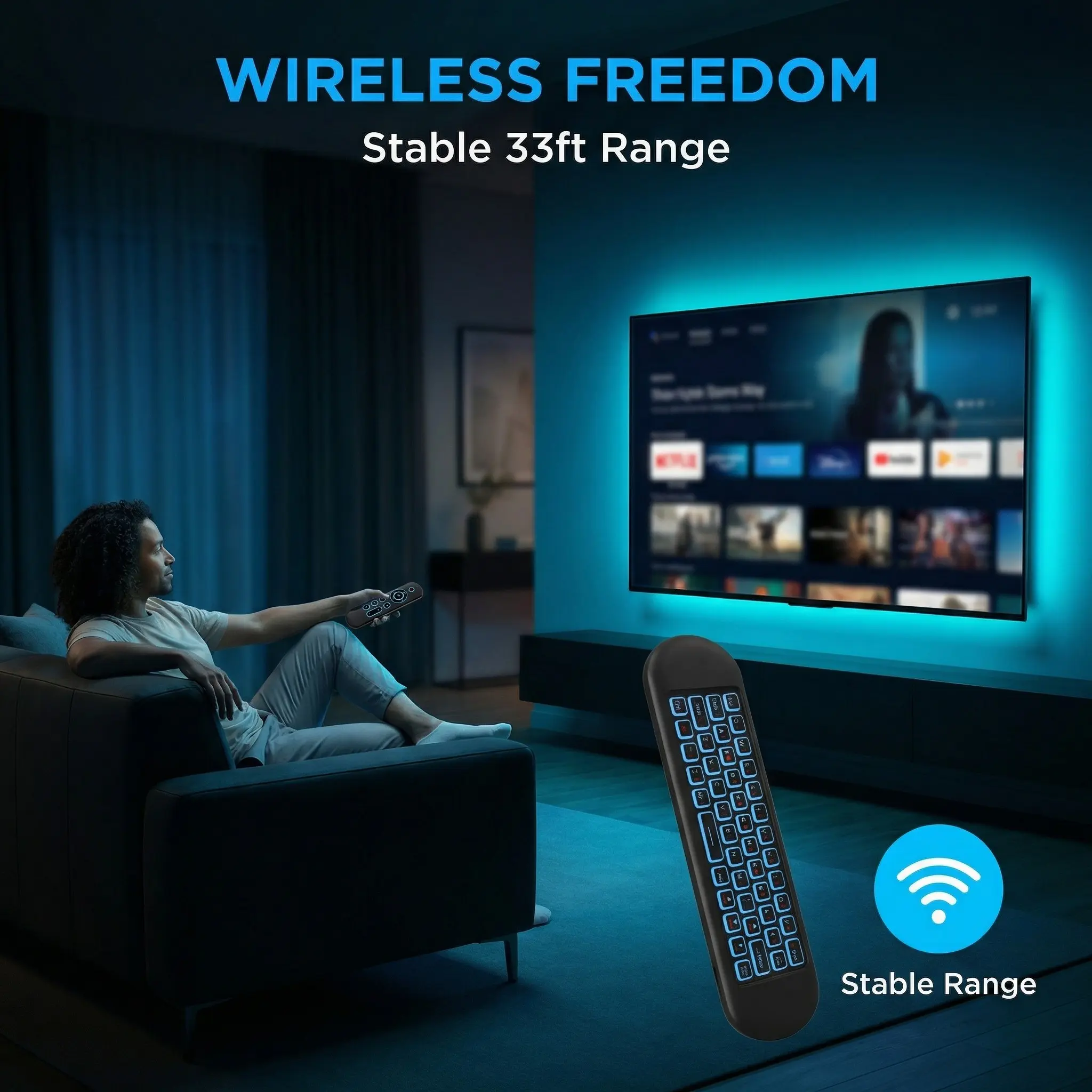2. [Built in 250mAh battery] TV remote control with keyboard, using built in 250mAh lithium-ion battery (USB rechargeable), never have to worry about sudden power outage!