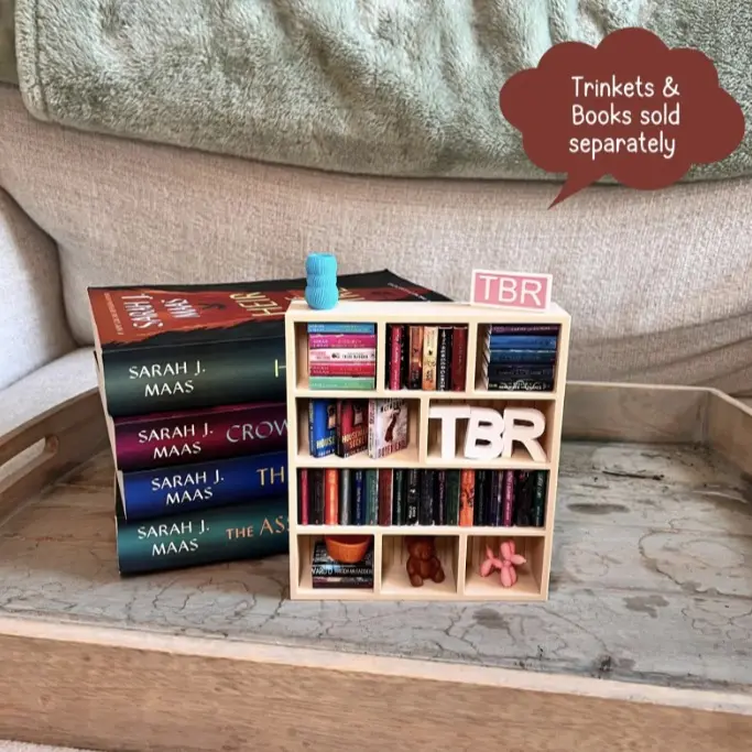 Mini Bookshelf Aesthetic Bookish Decor with Stackable Book Storage & Reading Sign Perfect Gift for Book Lovers Ideal for Stylish Mini Books