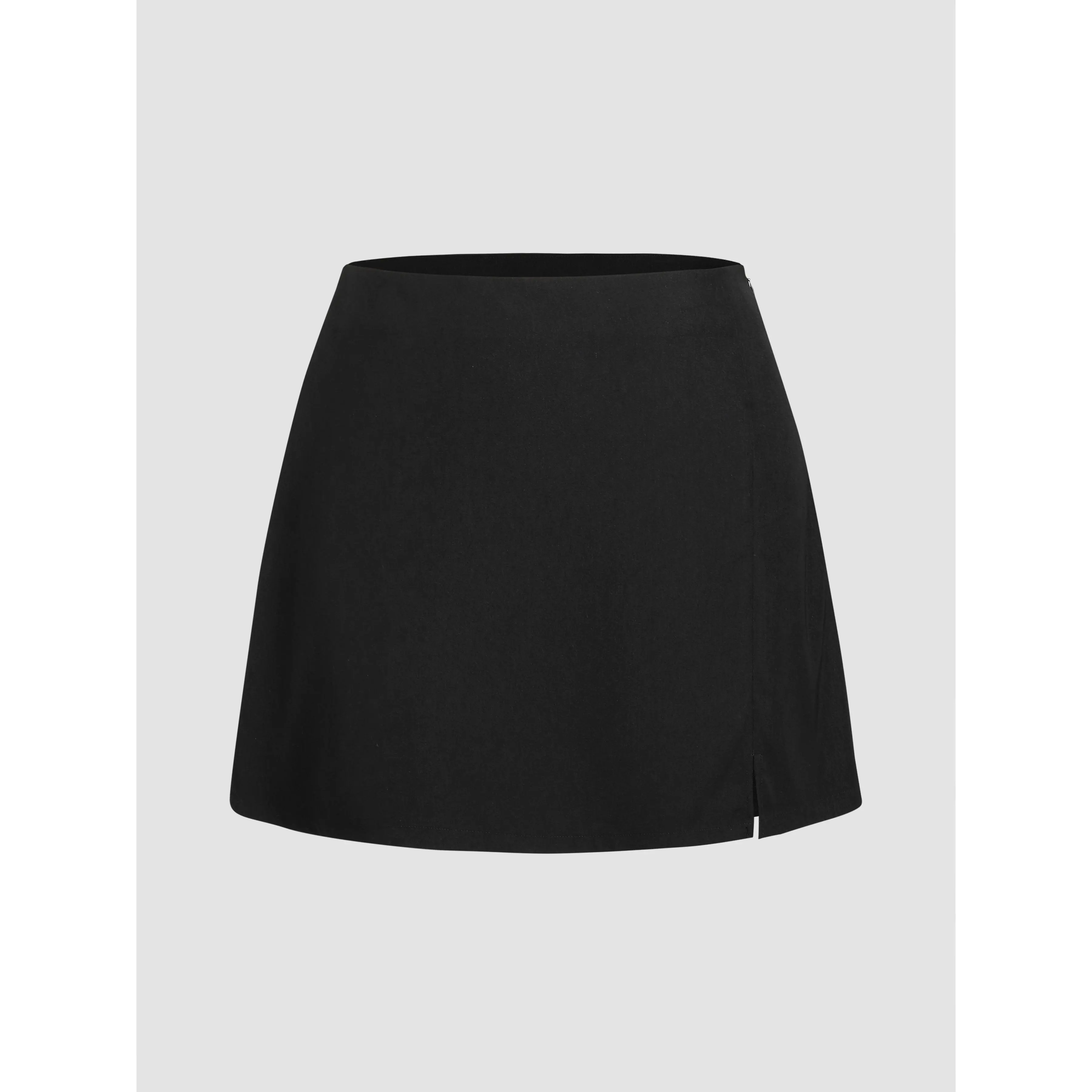 5. Cider [6 colors, size 0-26] High Waist Zip Up Slit Mini Skirt