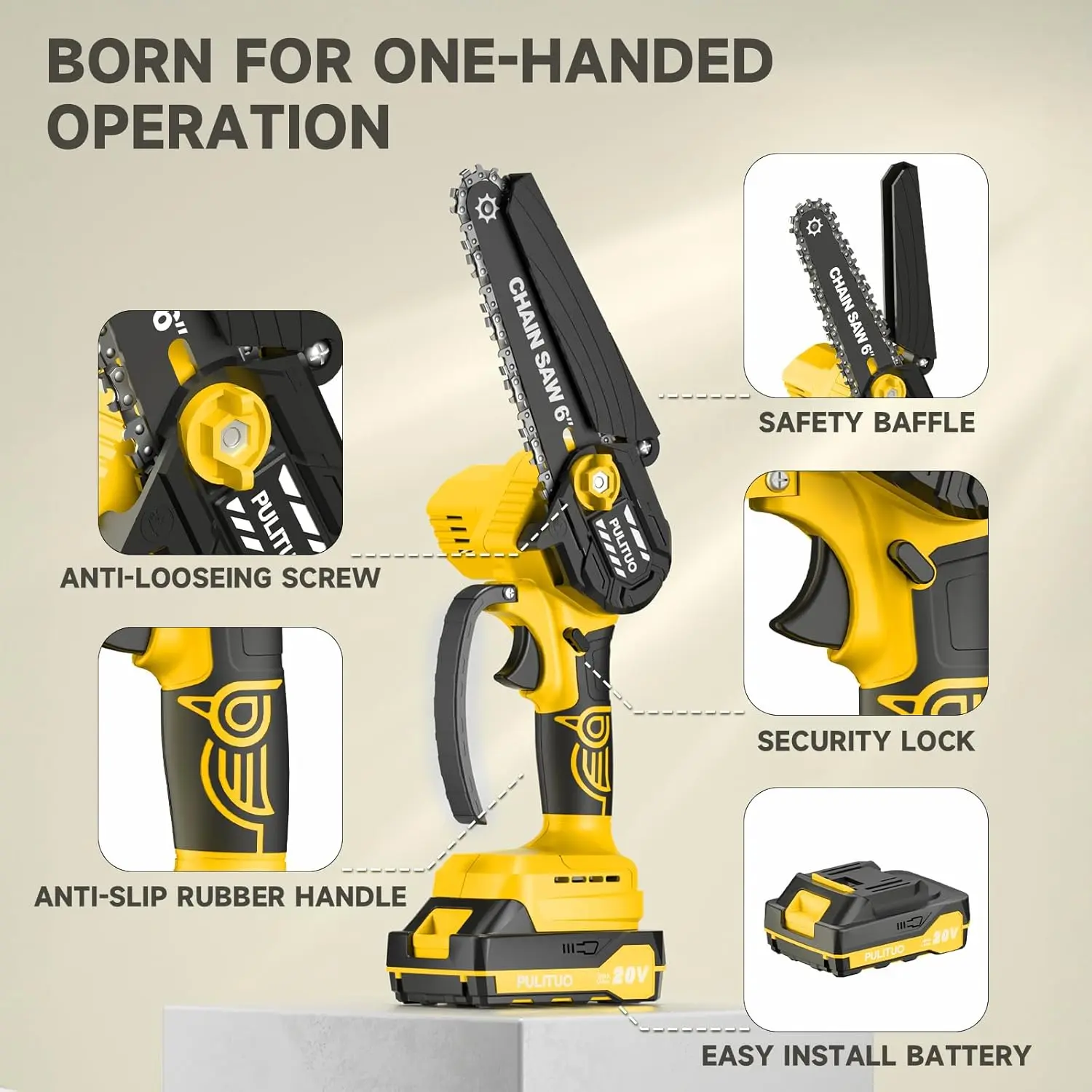 PULITUO 6 Inch Electric Chainsaw Cordless