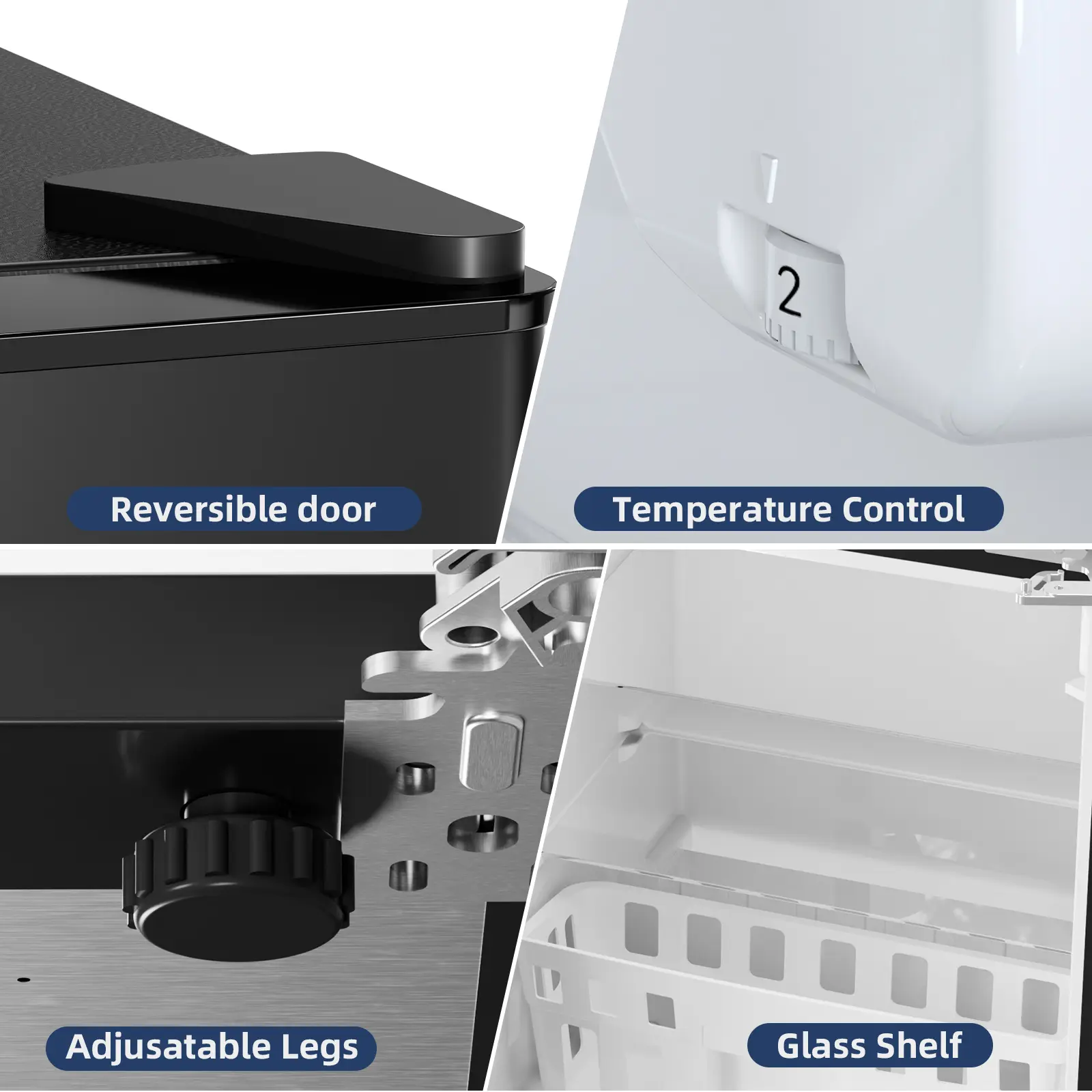 Love the stainless steel but they have all black and all white too! Shipped super fast came packaged nicely so it didn't get damaged in transit. Affordable and light. I love that it has a cute little ice tray and a basket in the bottom and the shelfs are glass inside really nice quality!
