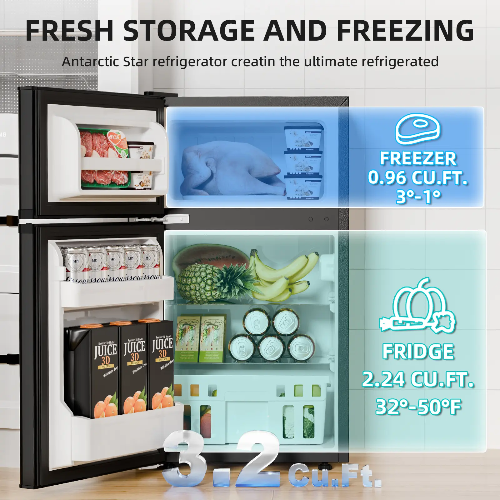 This fridge is absolutely amazing. The freezer works very well. Very quiet bottom part very spacious. I got it to take camping. Its perfect