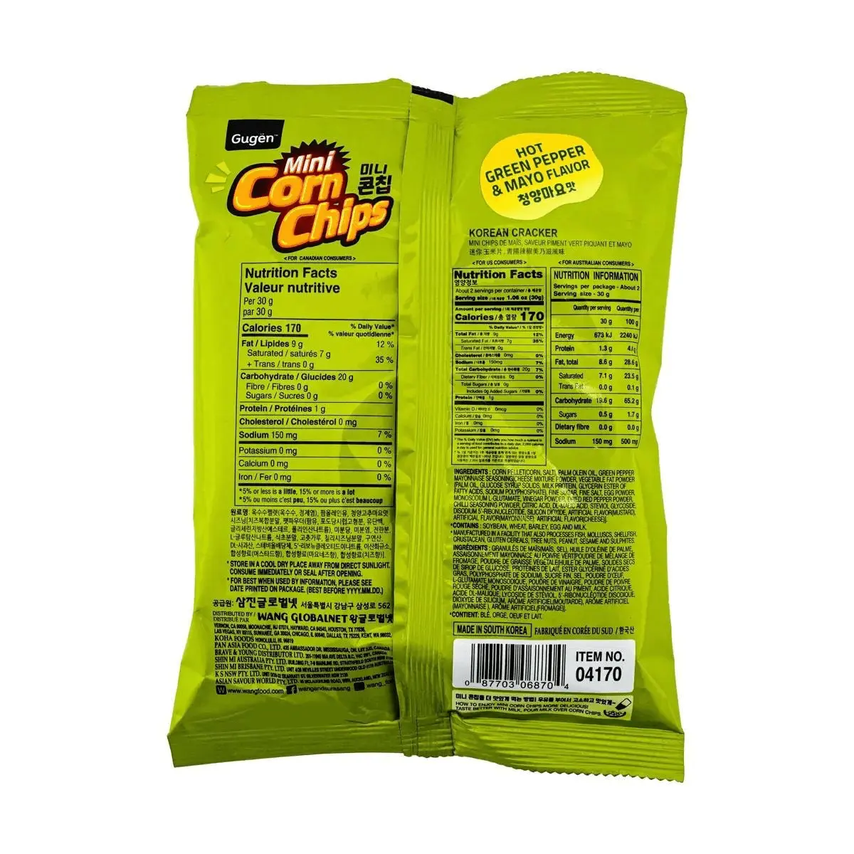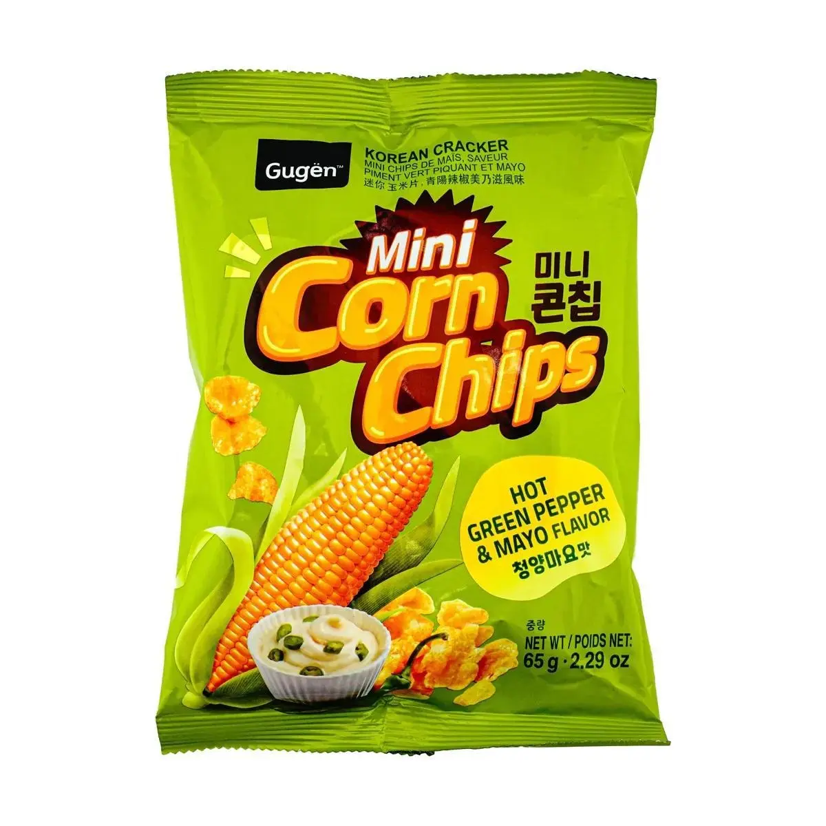 5. GUGEN Mini Corn Chips, Hot Green Pepper & Soy Sauce Mayo Flavor 2.29oz