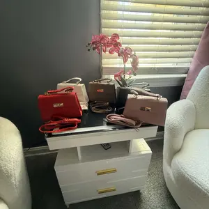 Beautiful, fancy, fits my phone charger, keys makeup and other stuff without a hassle.