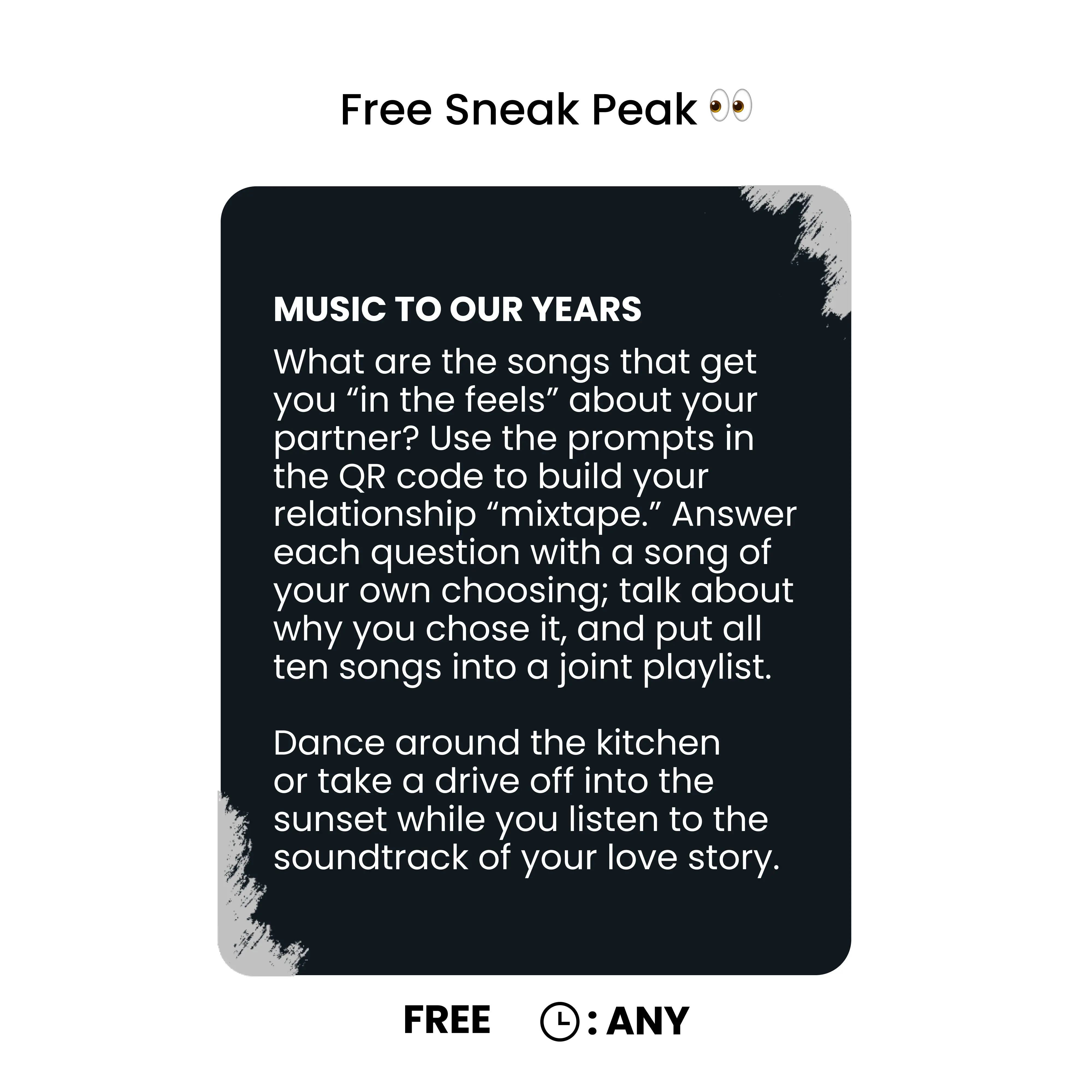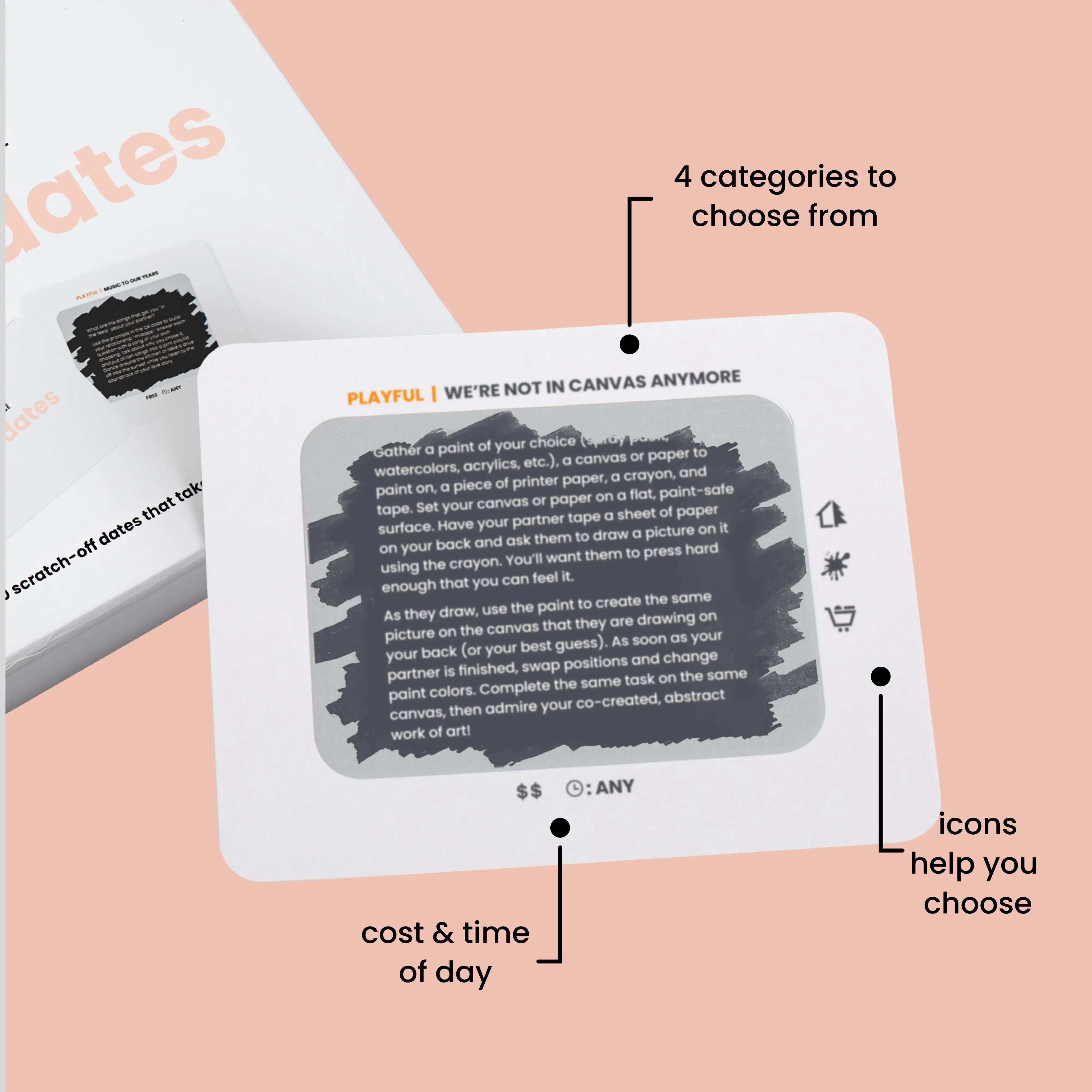 I bought this for my husband and we did our first mini dates card today. It was so much fun! We are going to buy different boxes now because we had so much fun! Thank you