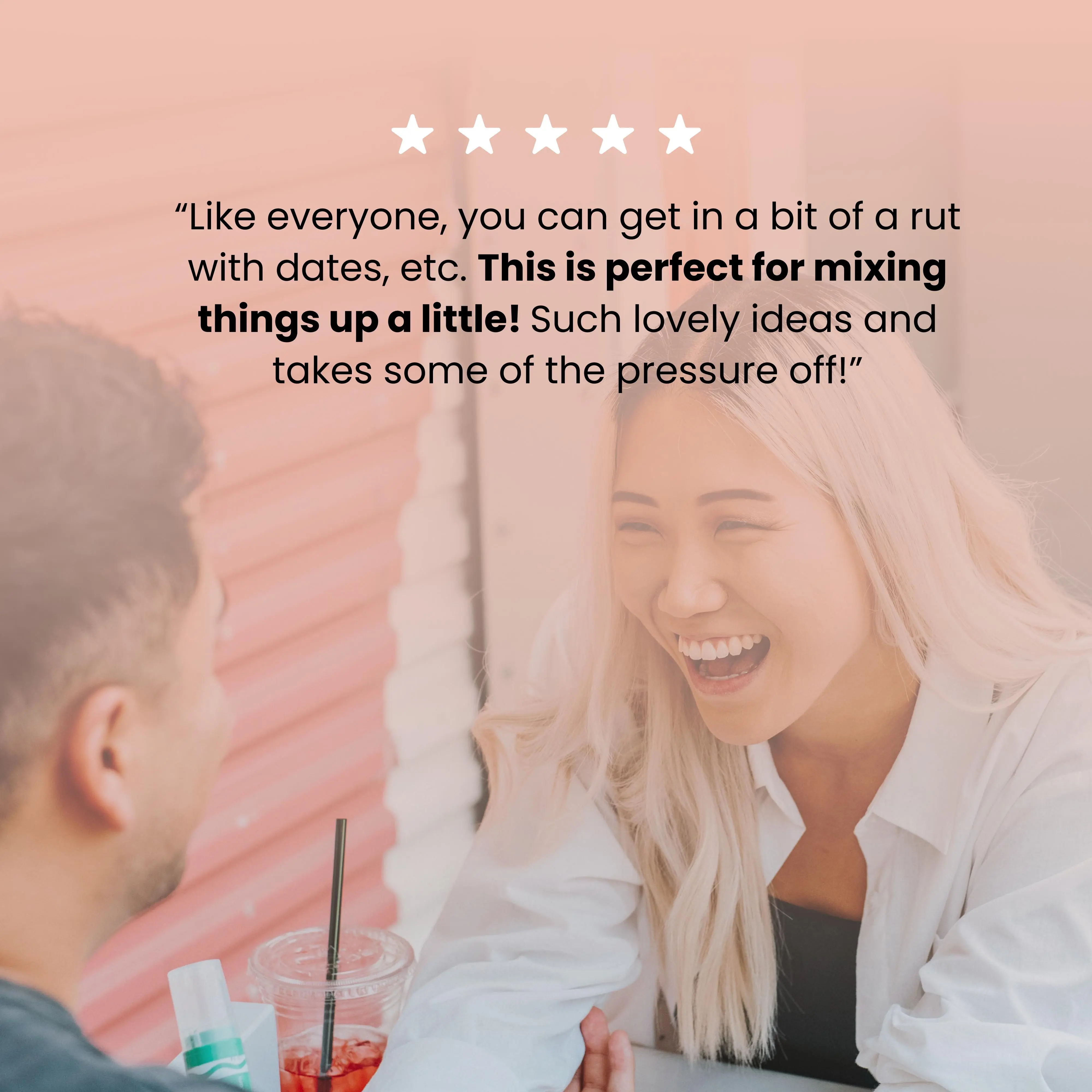 I wasn't sure what I would think about these "staged" date ideas. But we had SO much fun and really had some good conversations. It was exactly what we needed for evenings after the kids were sleep and we wanted to do more than sit around watching TV. Absolutely recommend!