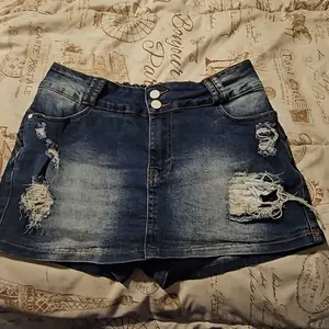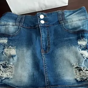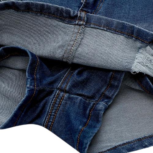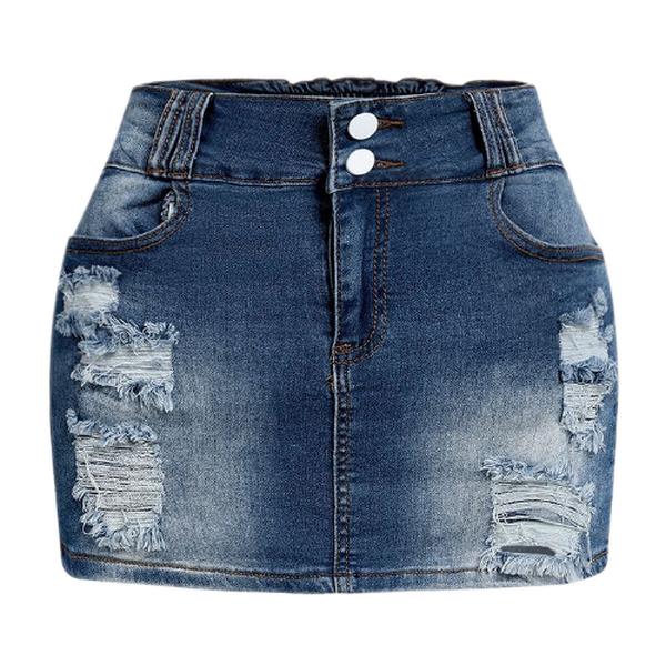 This Ripped Mid Waist Pocket Mini Denim Skorts Spandex Comfort Skirt is the perfect addition to your wardrobe for a casual and comfortable look all year round.