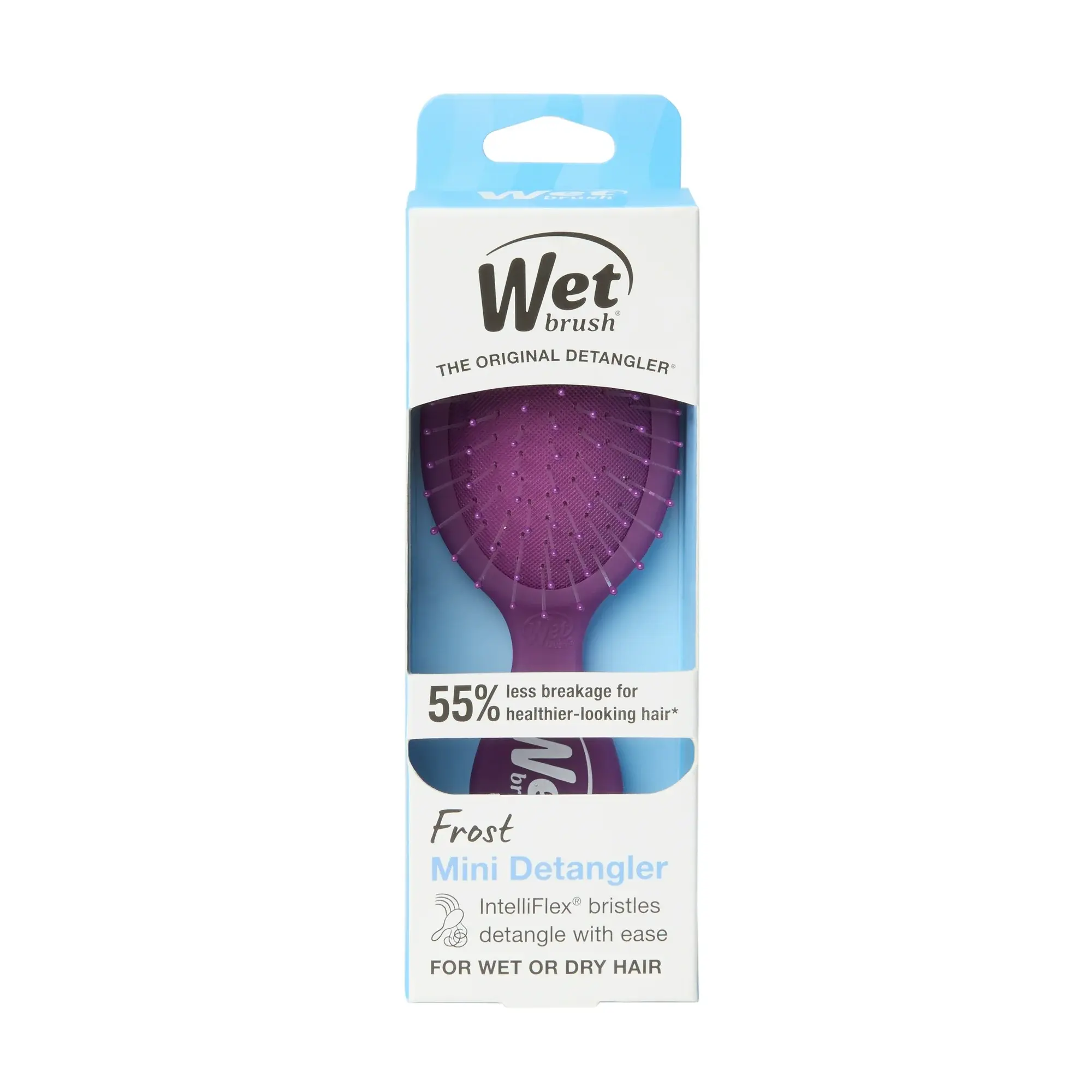 Meet the Mini Detangler Brush from Wet Brush, an on-the-go brush that helps hair stay strong and healthy! Crafted with ultra-soft IntelliFlexยฎ bristles, it gently loosens knots, on wet or dry hair, without pulling or snagging. Perfect for your purse, school or gym bag, or carry-on, its travel-friendly design is a must-have!