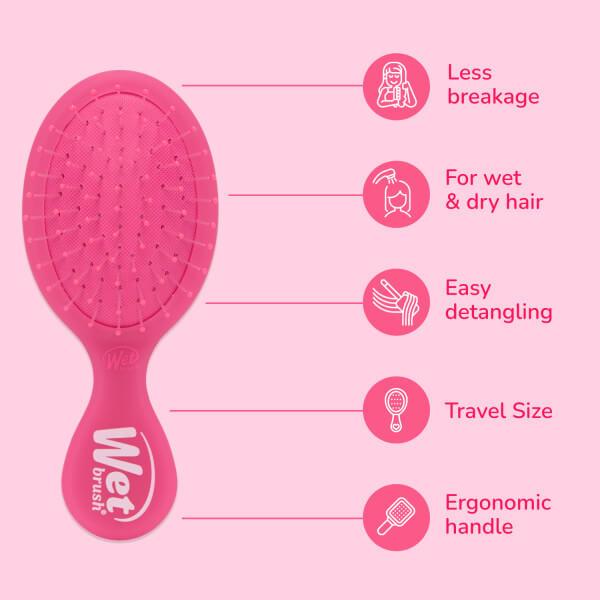 On-the-Go Detangler Compact Mini design that keeps hair strong & healthy—gently loosens knots on wet or dry hair without pulling or snagging.