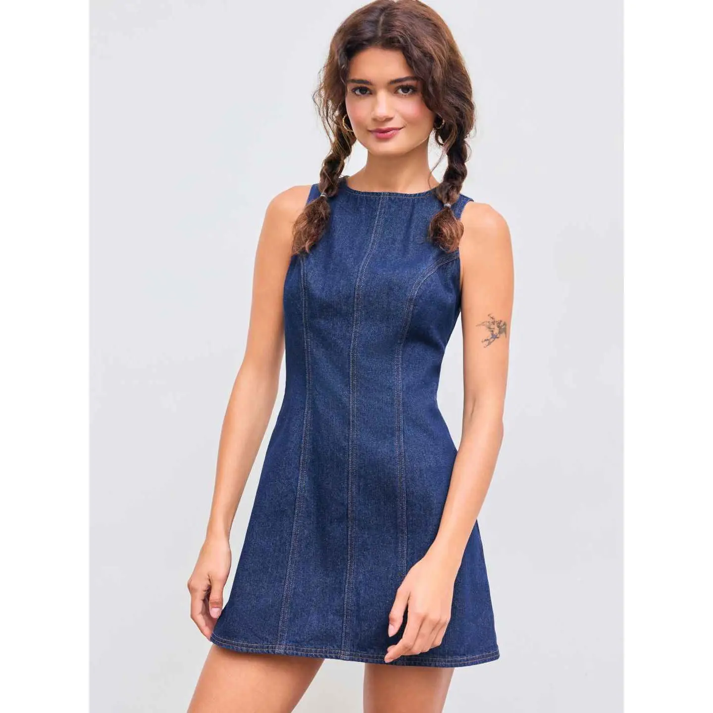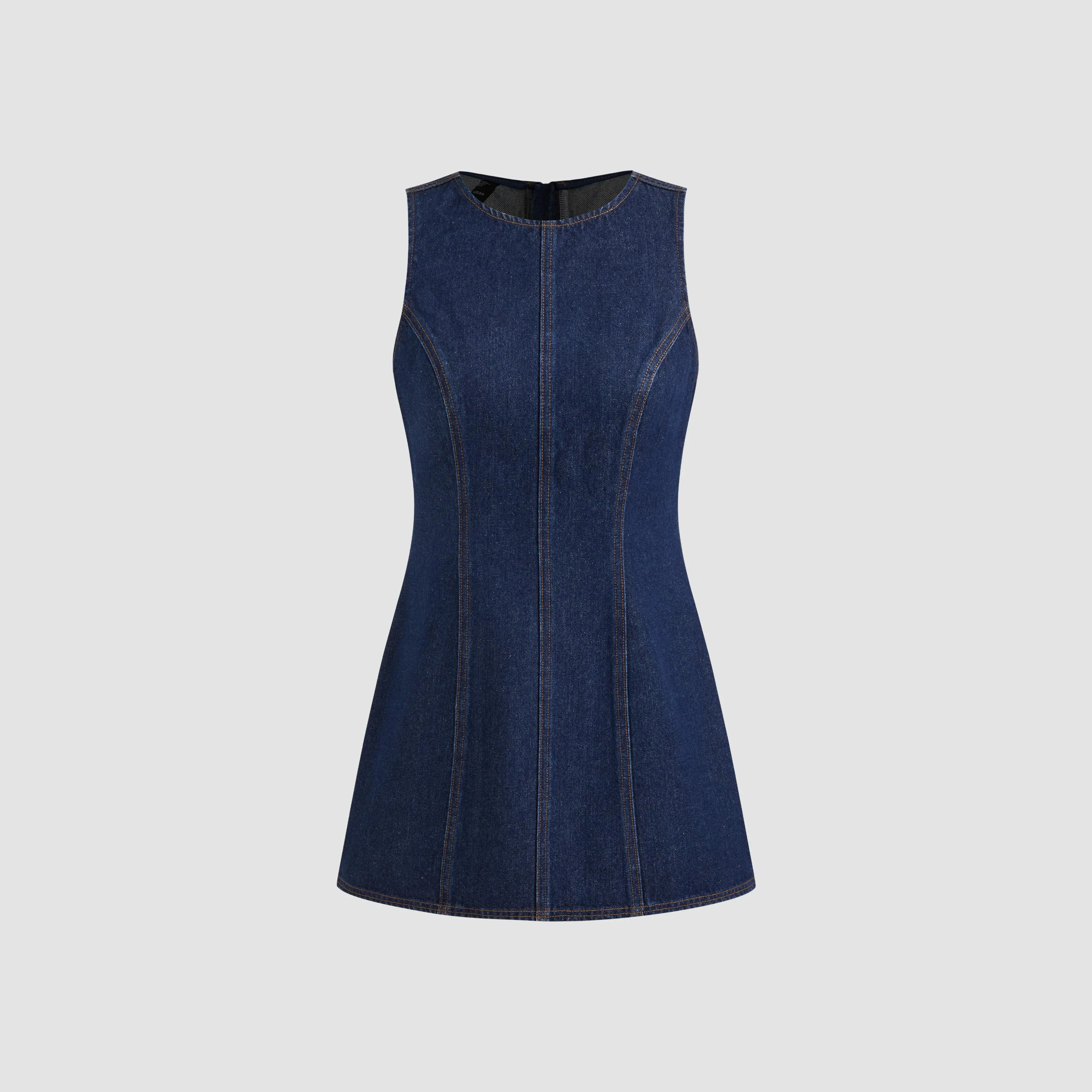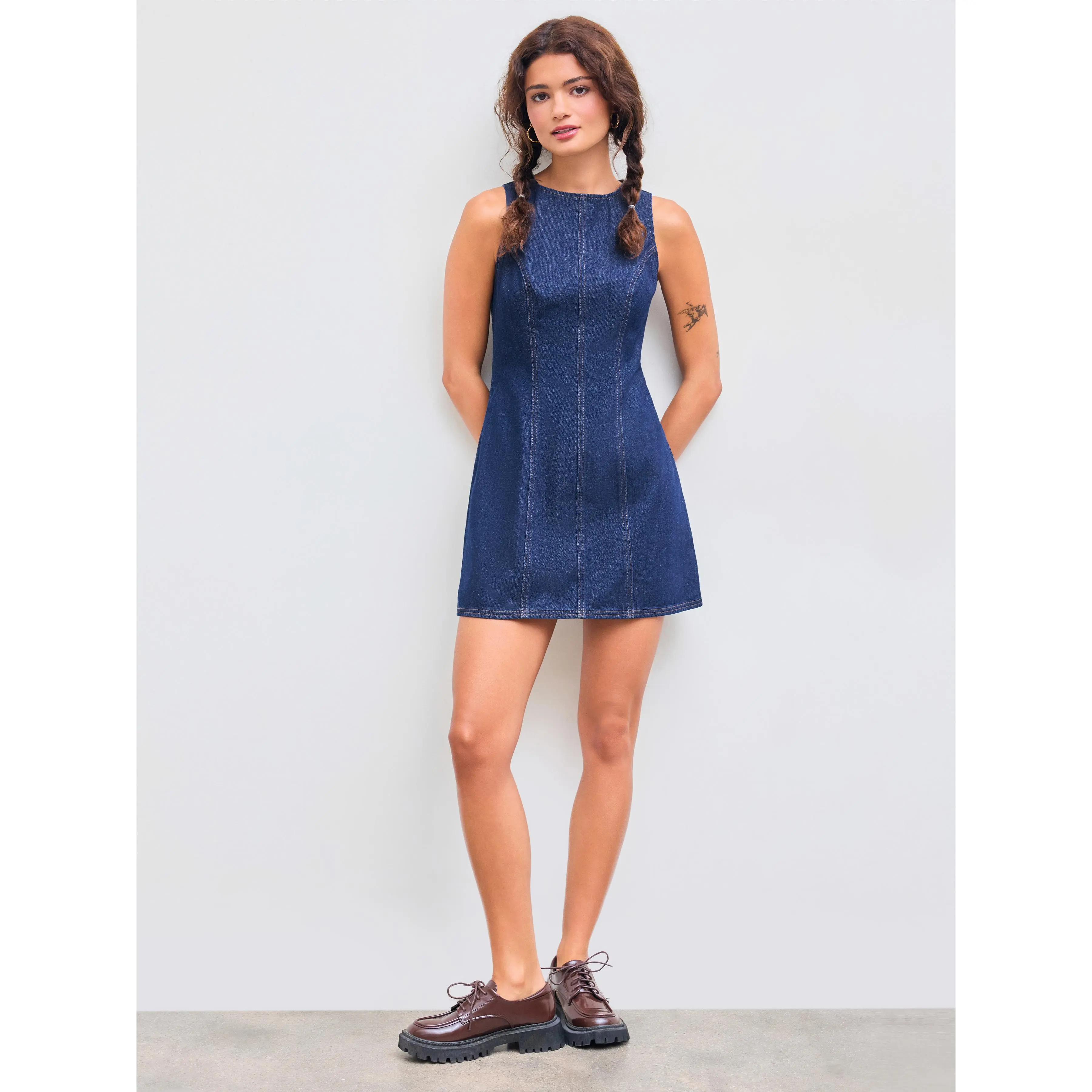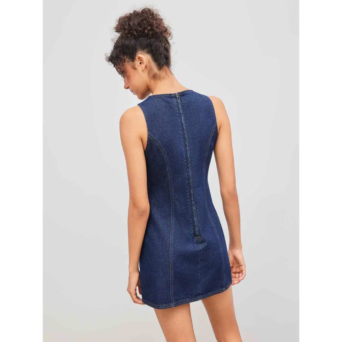 5. Cider [size 0-10] Denim Solid Zipper Sleeveless Mini Dress