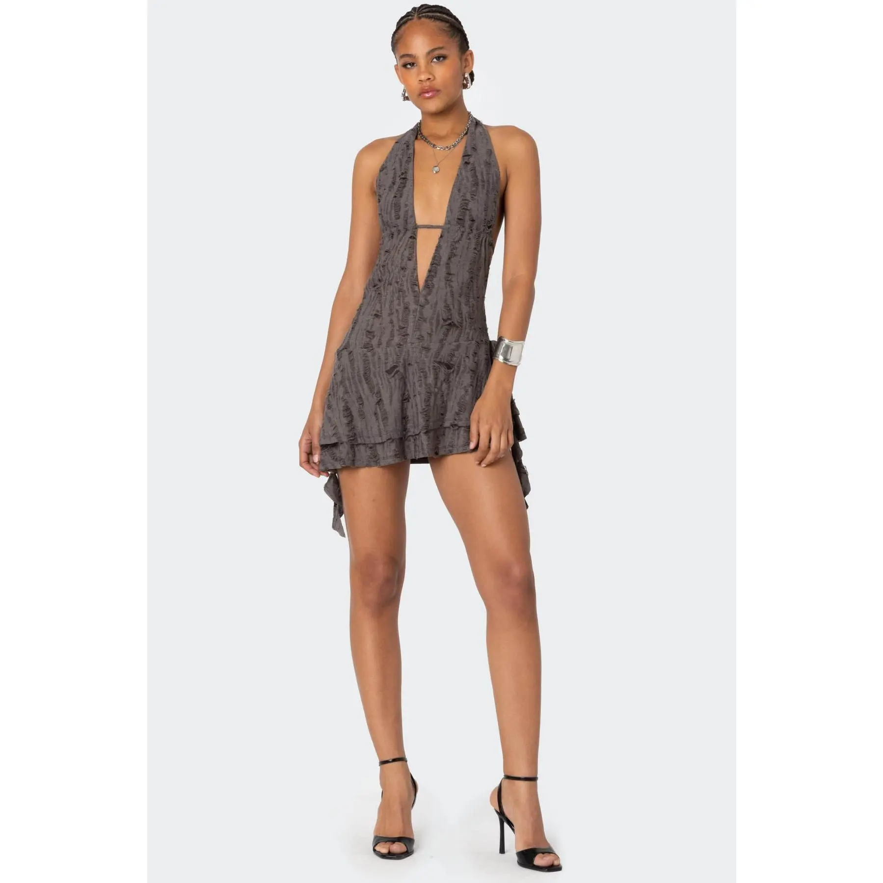 Ā·Cascading ruffled detailing