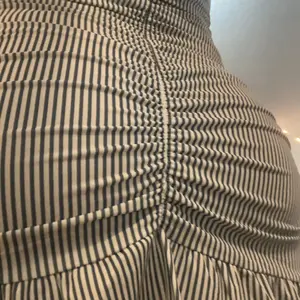 Texture is a little odd, it’s like a swimsuit. And you have to bunch it up a lot to make it as short as it is in the pics. Very cute tho