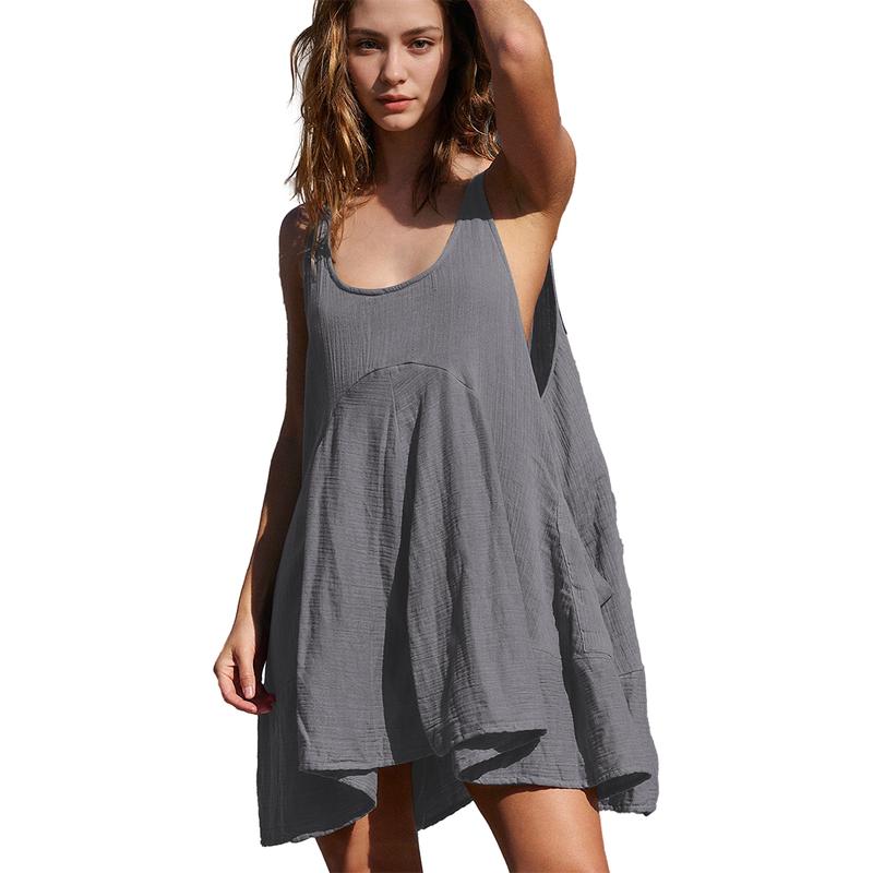 Feature: Fashion casual dresses for women 2024, featured in sleeveless, crew neckline, solid color, tie-back closures, dropped armholes, curved empire waistline, mini length, and two side pockets, summer spring outfits for women, relaxed loose fit style, suit for most figures.