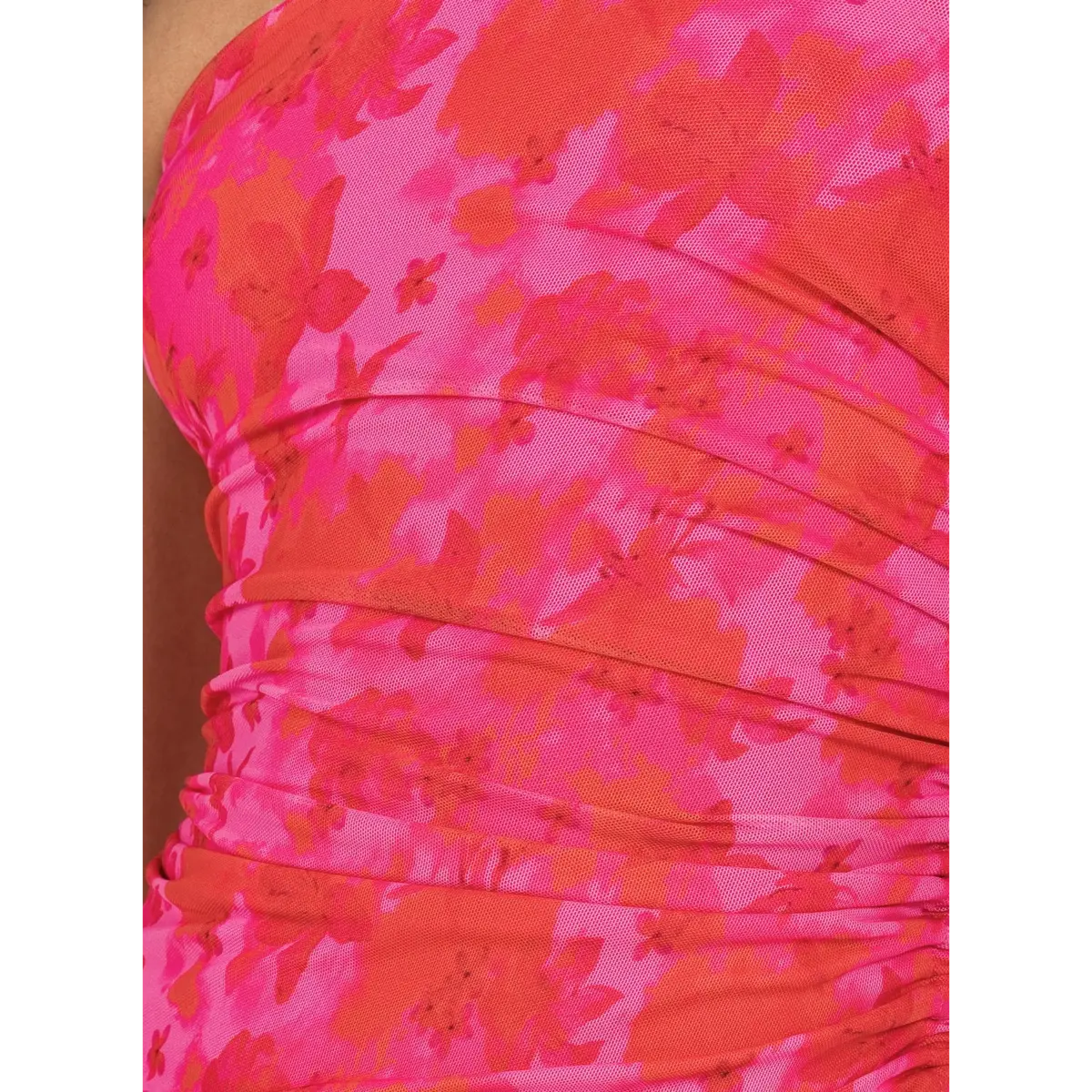 ·Slim fitting, mesh material, leg slit, inner silicone strip at bust, adjustable ruching at side
