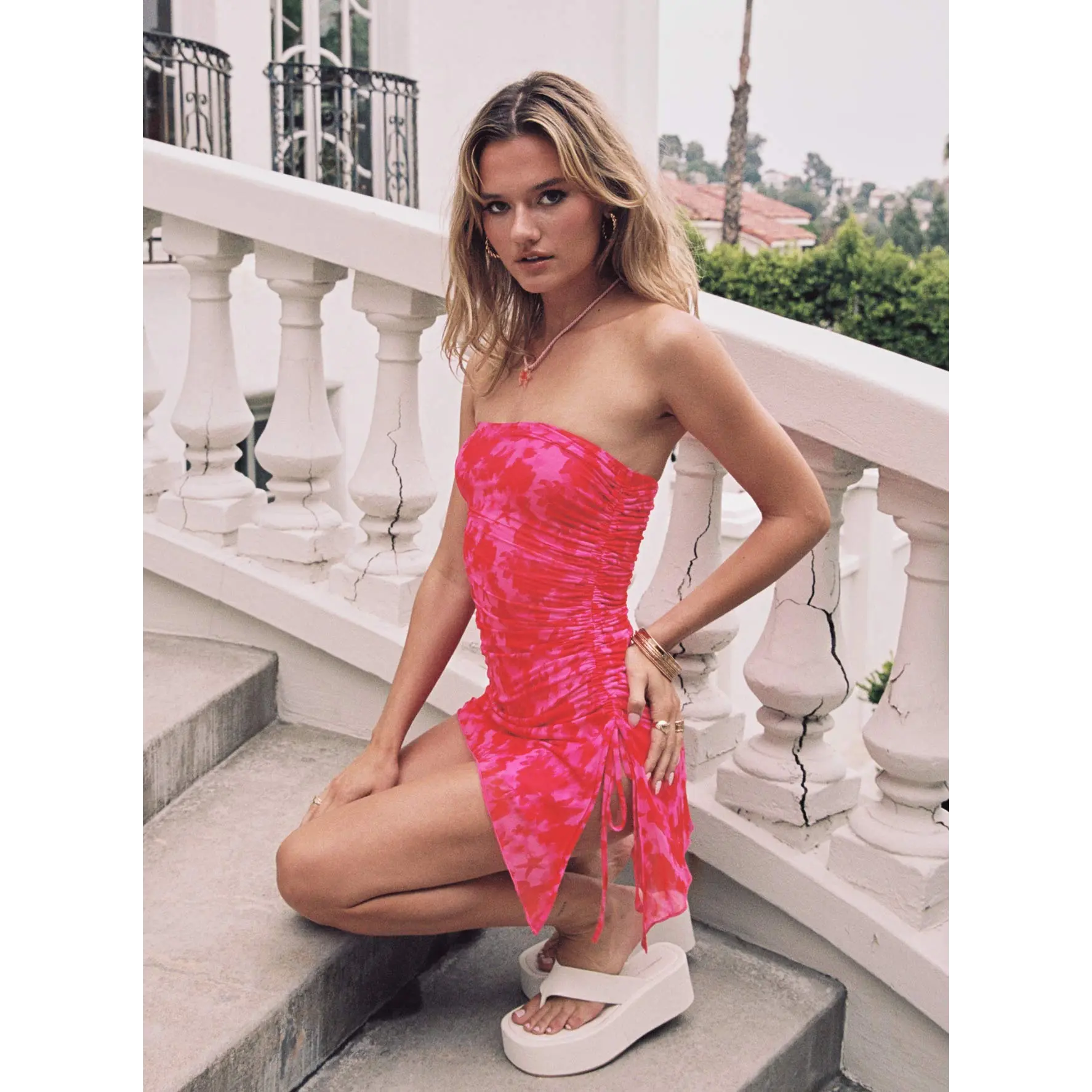 ·Strapless floral Mini dress