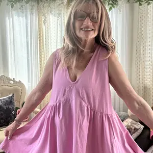 Designed with a flattering V-neckline, dropped armholes, and a flowy babydoll silhouette, this sundress offers an airy, relaxed fit that keeps you cool and comfy from spring to summer. Made from soft, stretchy, skin-friendly fabric.