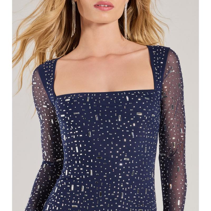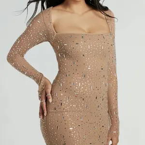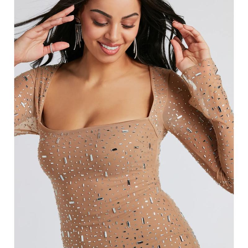 5. Dazzling Glam Long Sleeve Rhinestone Mesh Mini Dress